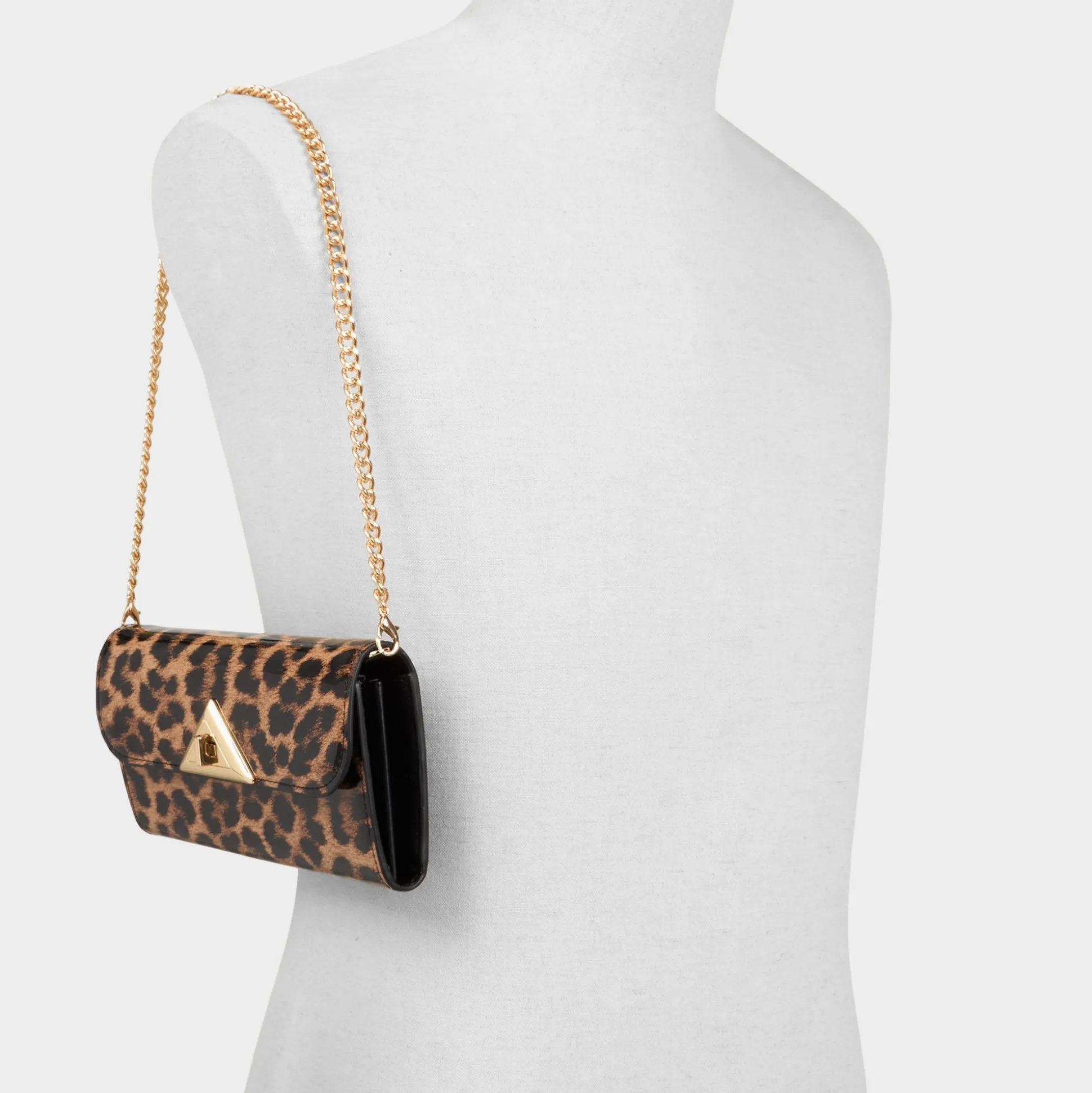 Leopard patent gleams with confident glow, turning every look into a statement, while a bold triangular gold clasp anchors the mood and keeps essentials secure in a single, satisfying click. Carry it with a sleek slip for rooftop cocktails, or tuck it under a blazer with jeans and heels for last-minute city nights.