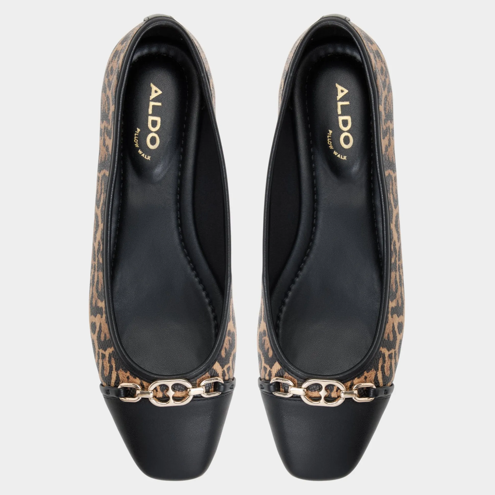 Chic leopard-textured uppers meet a smooth black cap toe trimmed with gold, adding downtown flair to this ballet flat while cloud-soft padding keeps you steady through spontaneous detours. Pair with cropped trousers for coffee catch-ups, or swap in a satin slip dress when gallery openings glide into cocktail hours.