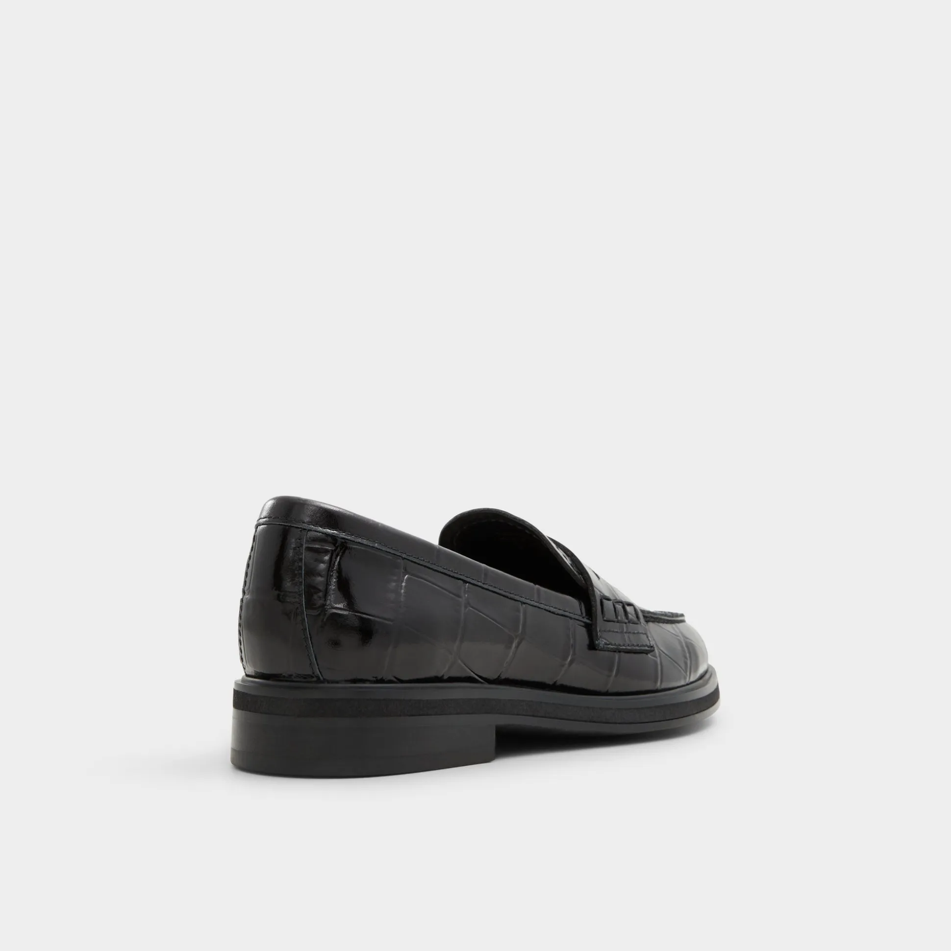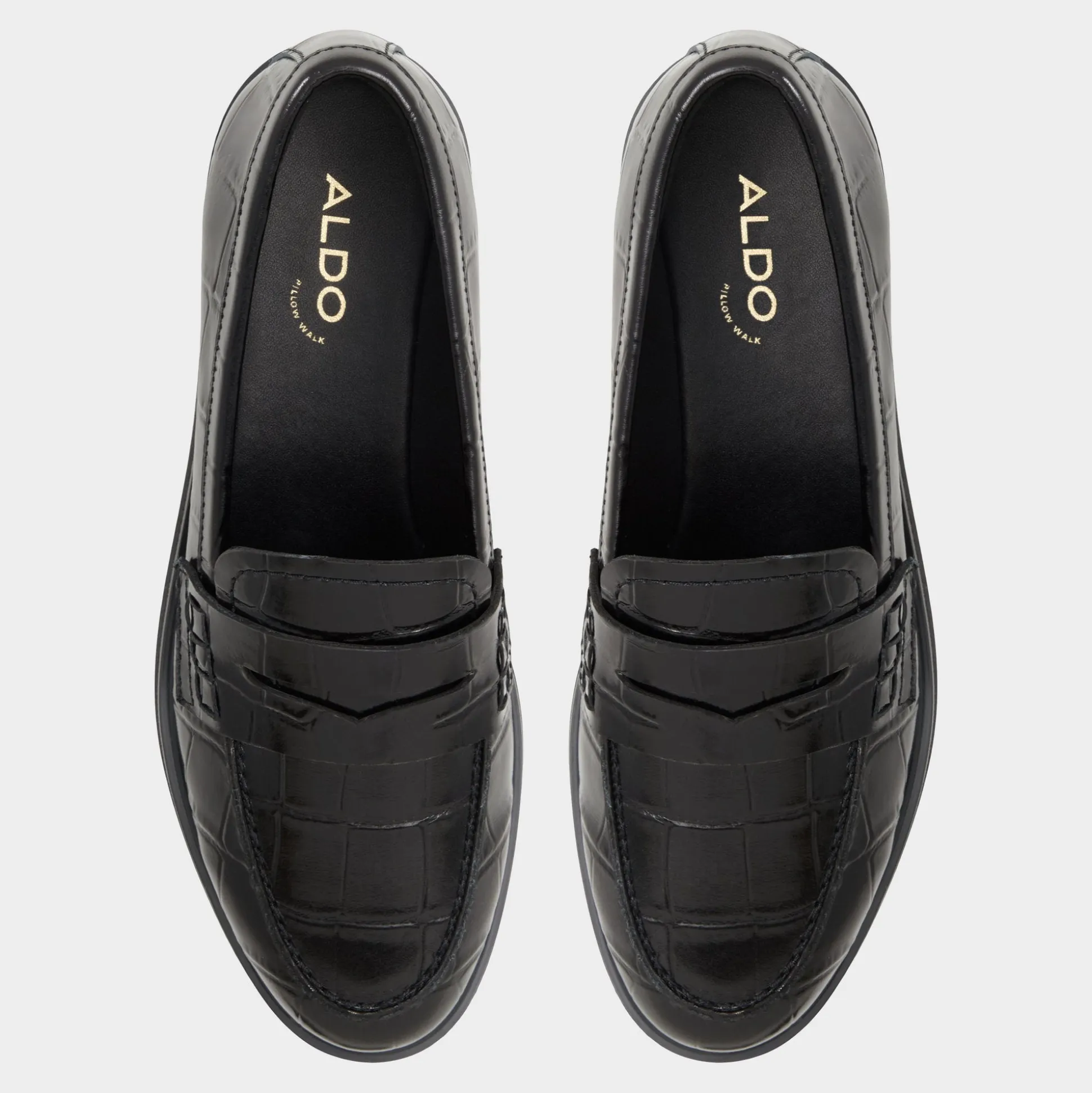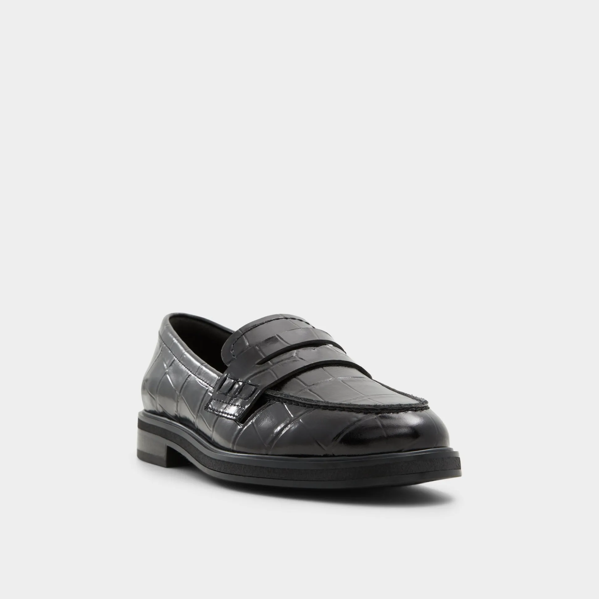 Glossy croc-embossed leather turns this penny loafer into a quiet power move, and the cushioned cup sole keeps strides easy so you can glide from subway stairs to strategy sessions without missing a beat. Pair with sharp pleated trousers for stake-out meetings, or swap in cropped denim when gallery drinks run past curfew.