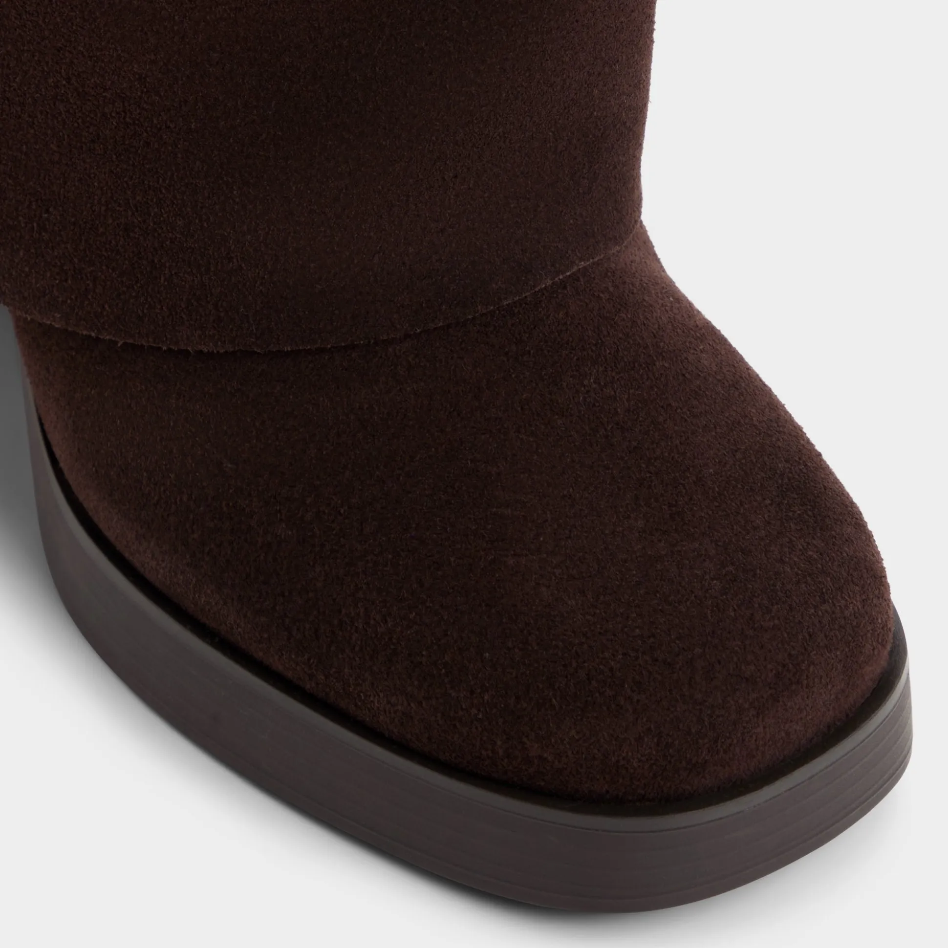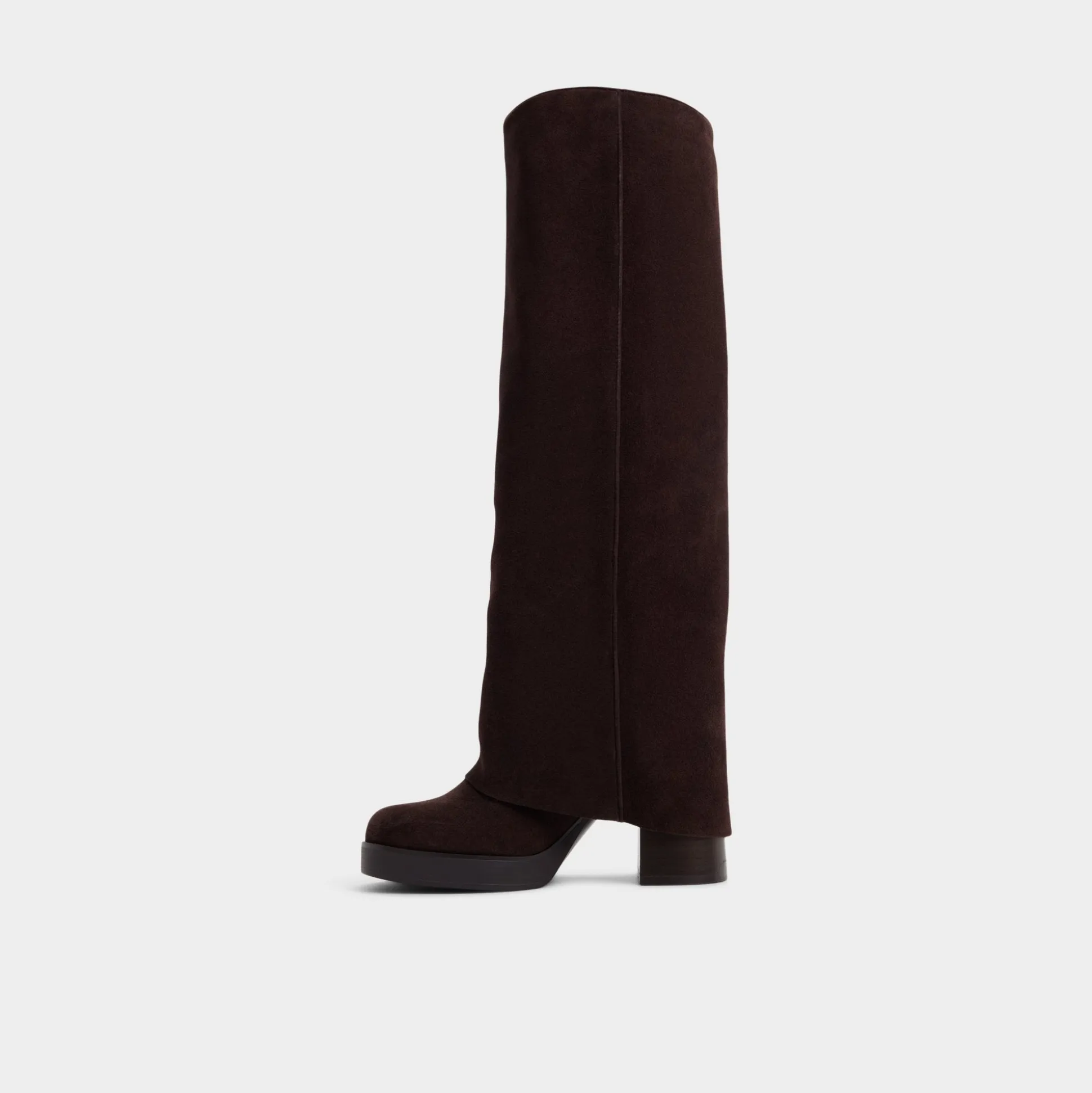 Rich espresso suede carves a sleek knee-skimming line, and hidden platform-block heels deliver a confident city stride with steady lift from sunrise strolls to after-hours gallery hops through busy sidewalks and quiet evenings. Pair with a sweater dress for gallery afternoons, or blend with wide-leg denim for vinyl hunts that last until dusk.