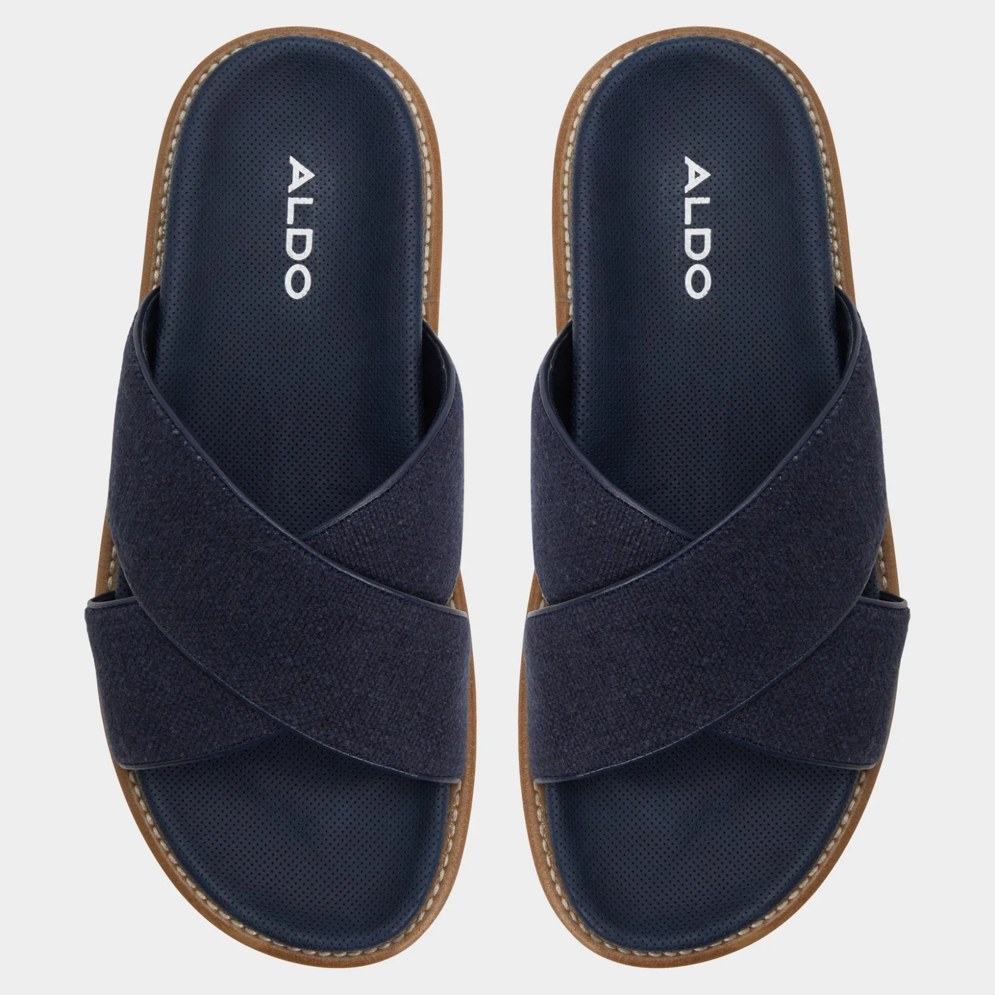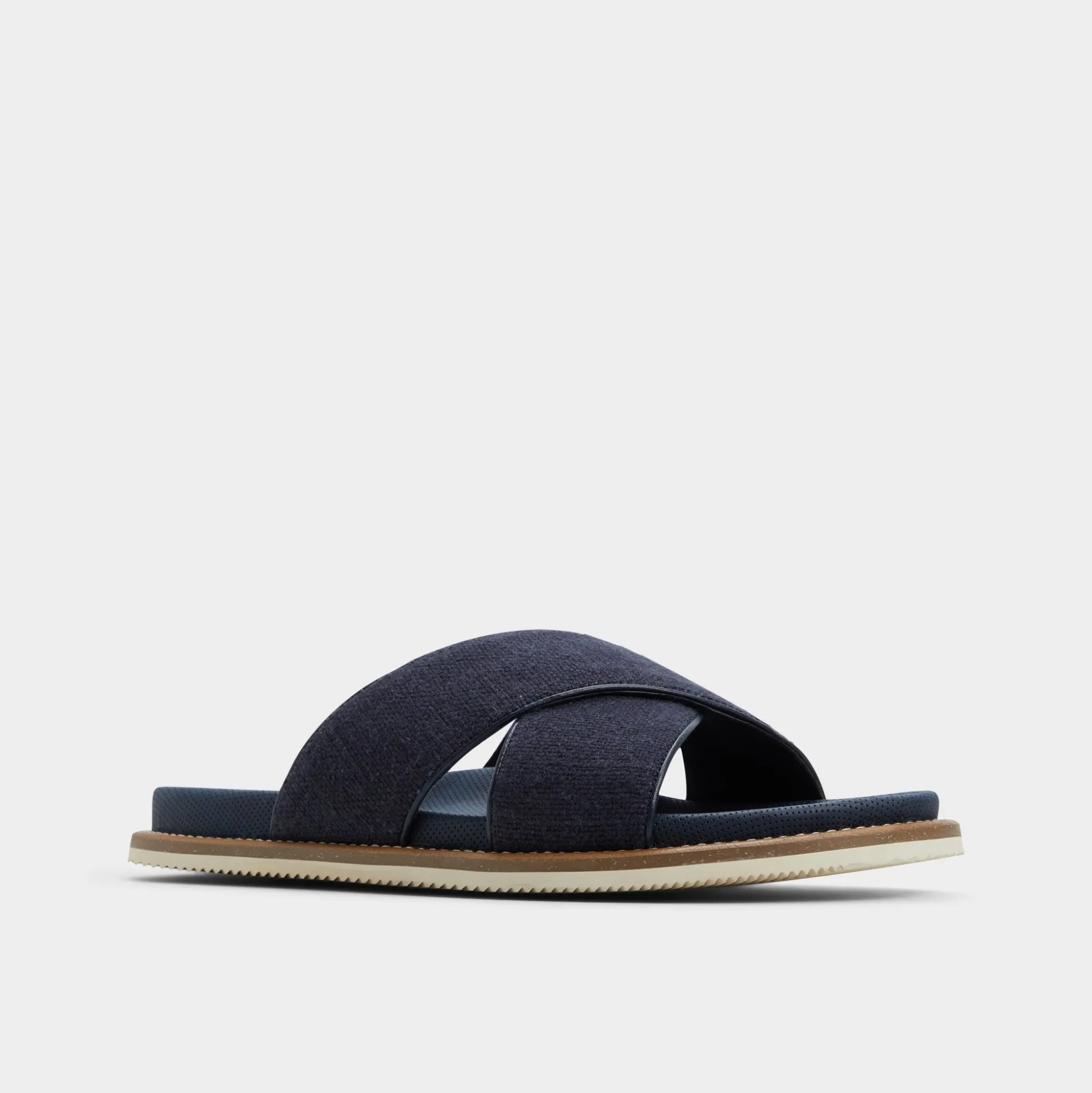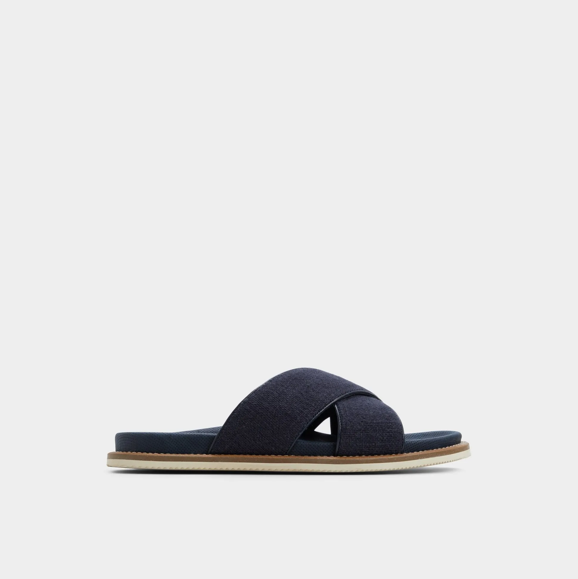 These sleek slides with with wide crossed straps will add a contemporary touch to your warm-weather wardrobe.