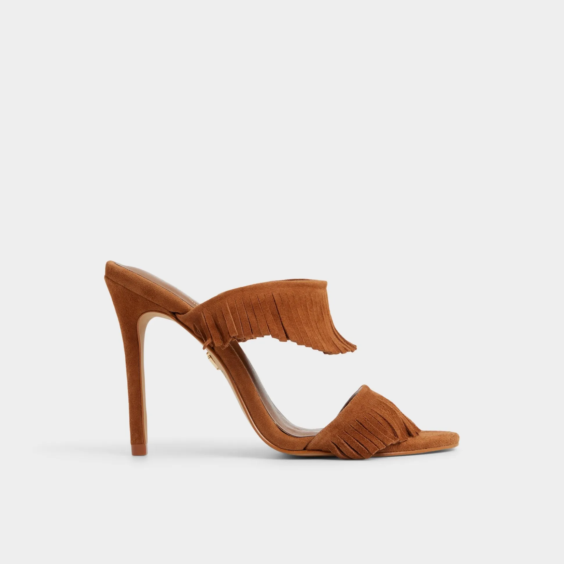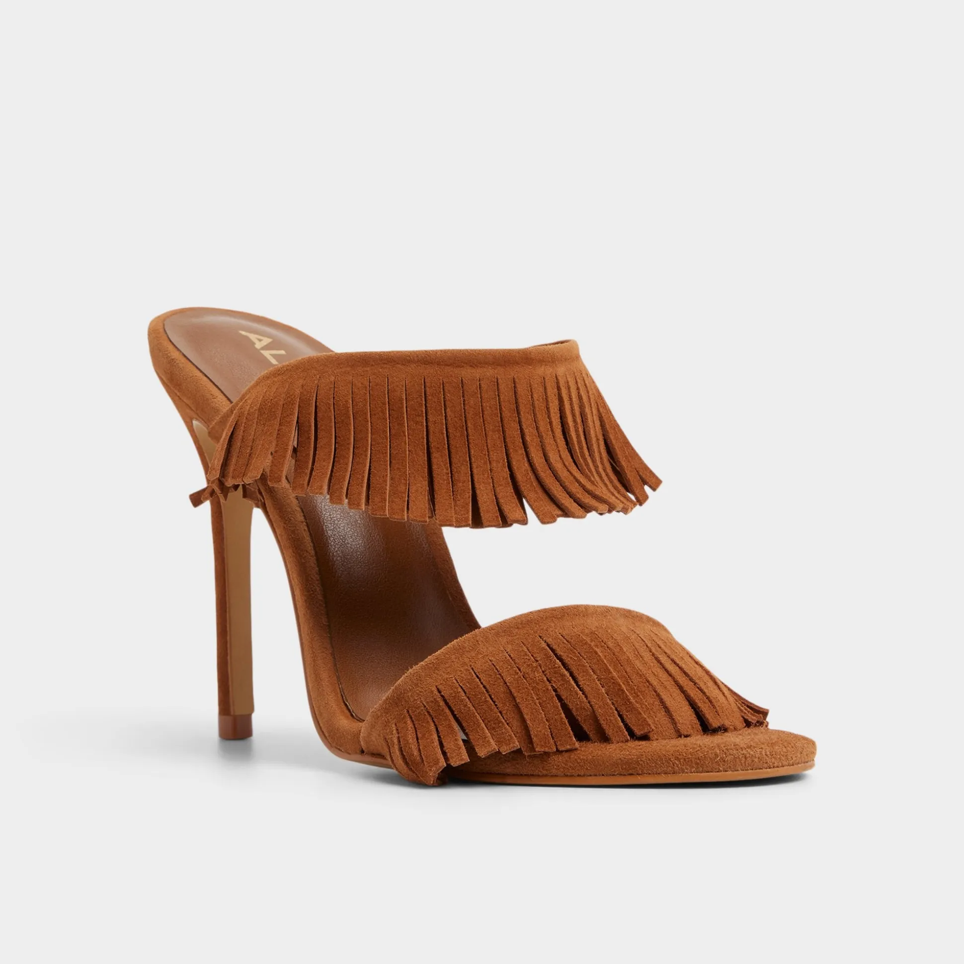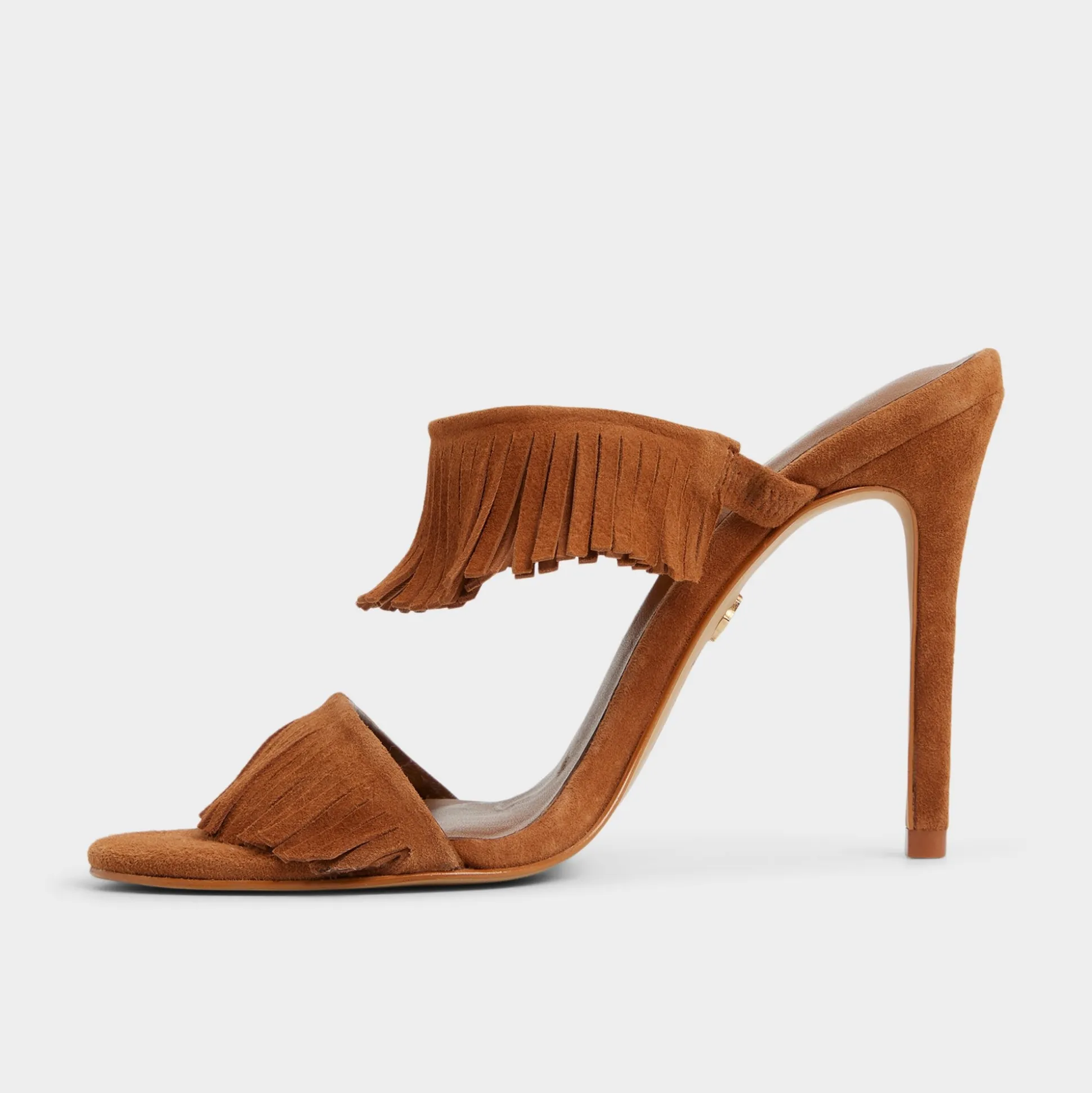 Soft caramel suede fringe drapes over the foot, while a sky-touching stiletto adds posture-poised drama that makes every step feel intentional and effortlessly chic, ready for the day. Pair with flare jeans for rooftop concerts, or swap in a sleek jumpsuit for gallery openings and late-night city strolls.