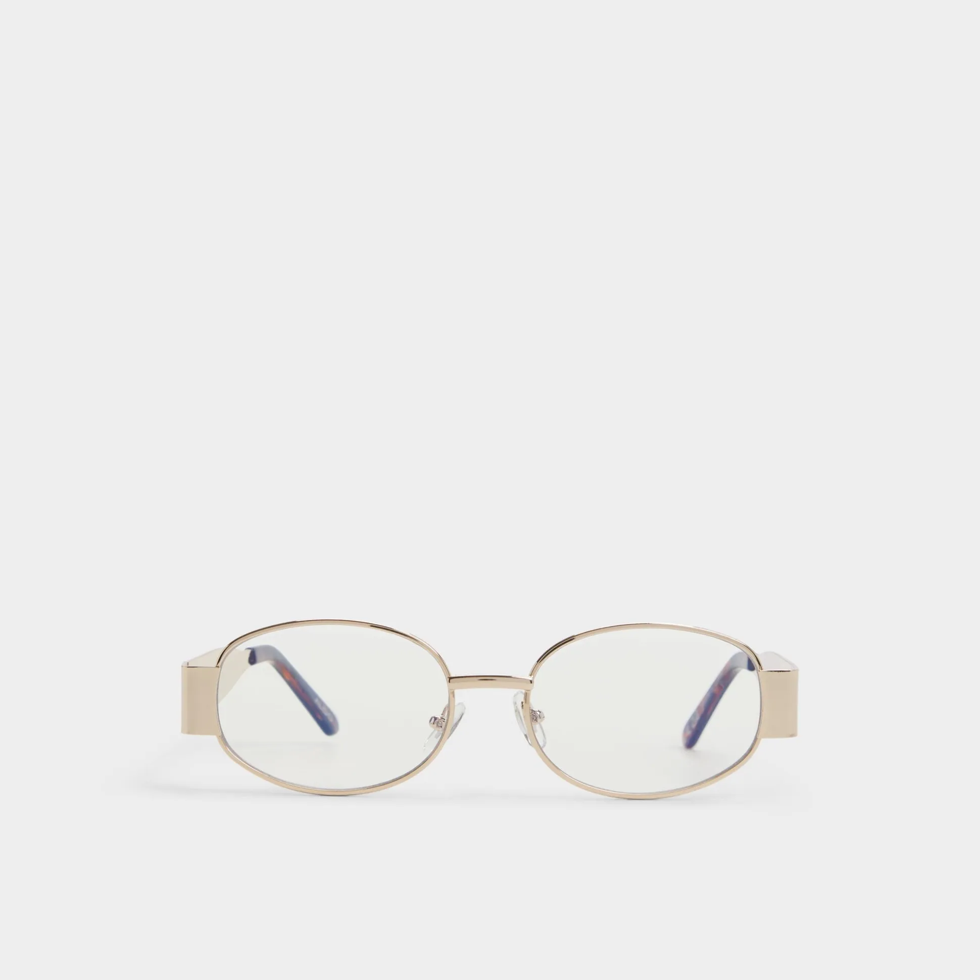 Gold-finished oval lenses float in a slim metal frame, catching sunlight with a sleek yet approachable look for city days and weekend getaways. Pair them with a linen shirt dress or wear them with a crossbody for a city stroll.