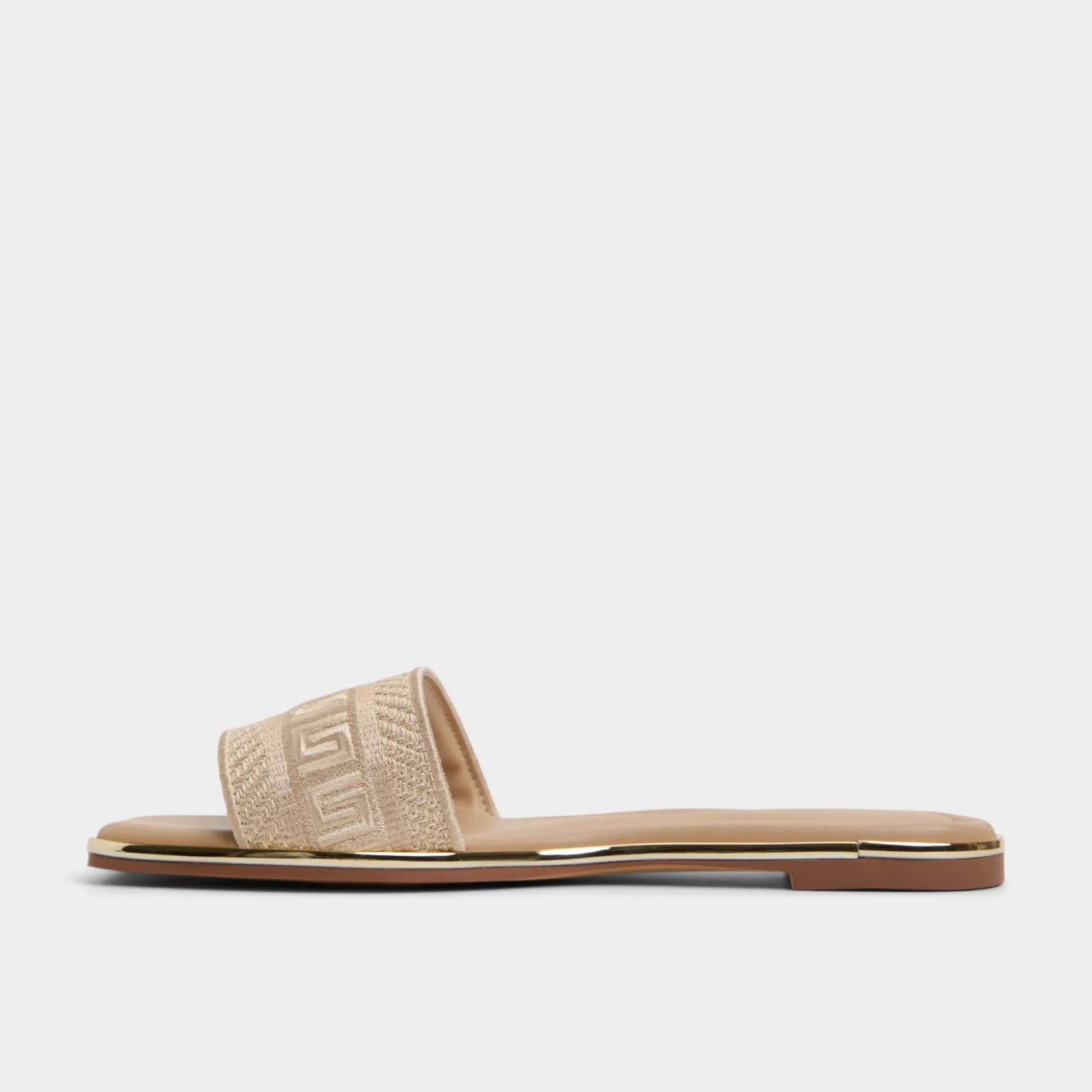 Sun-bleached textile slides ride the line between beachy ease and city polish, with woven straps and a subtly padded footbed that cushions every footstep and a whisper of brand pride that stays with you. Pair with linen joggers for market runs, or slip beneath a flowing midi for seaside dinners and sunset strolls.