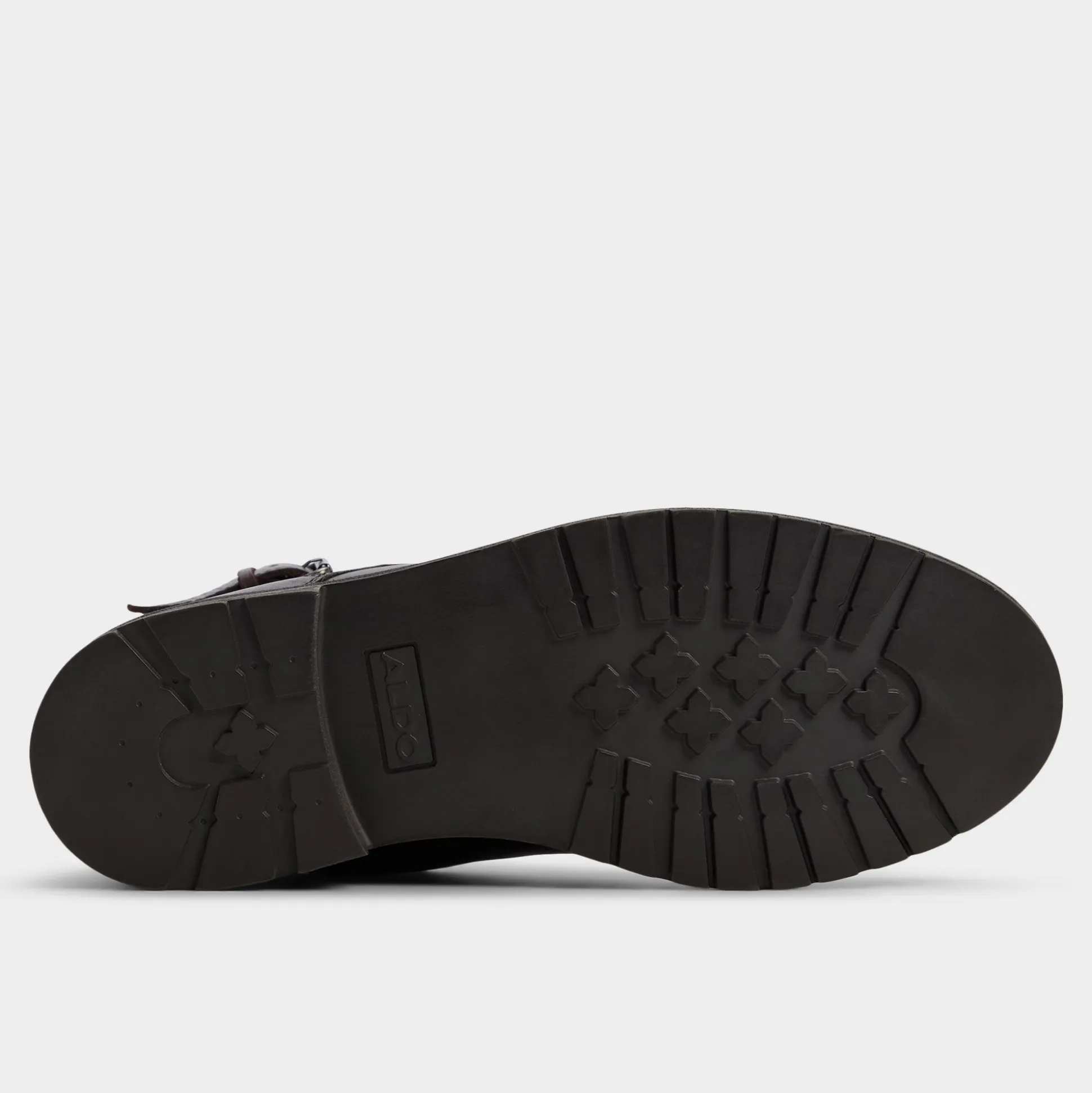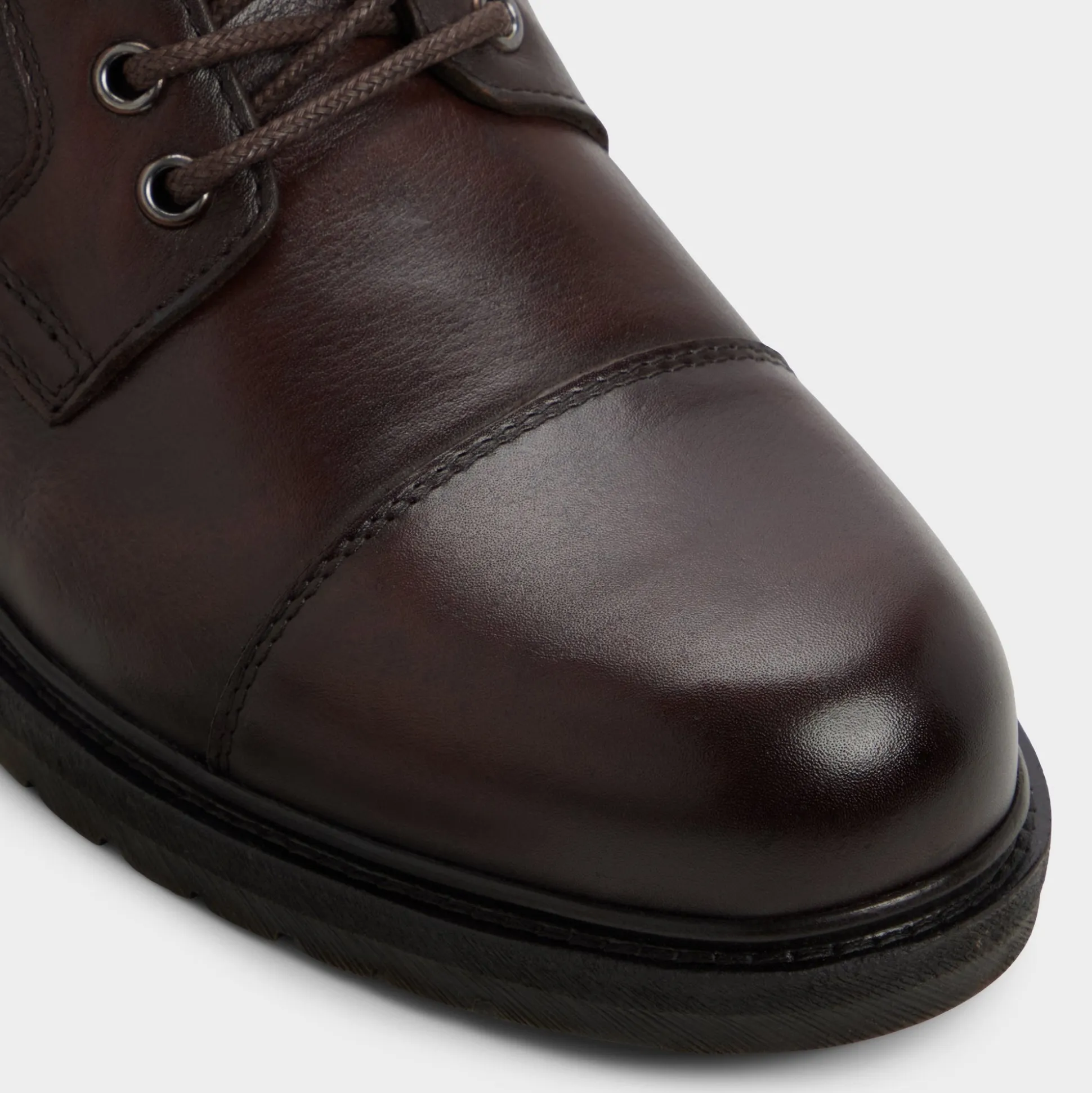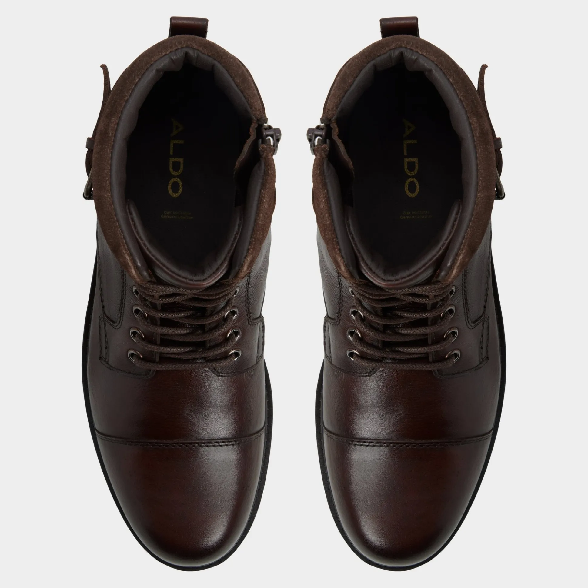 Espresso leather meets a textured wool collar and functional buckle strap, giving this cap-toe boot street-ready attitude, while a lugged rubber sole grips wet sidewalks and cushioned lining eases winter commutes. Anchor dark selvedge denim for weekend markets or smarten flannel trousers at casual offices-the brown hue fits everywhere.