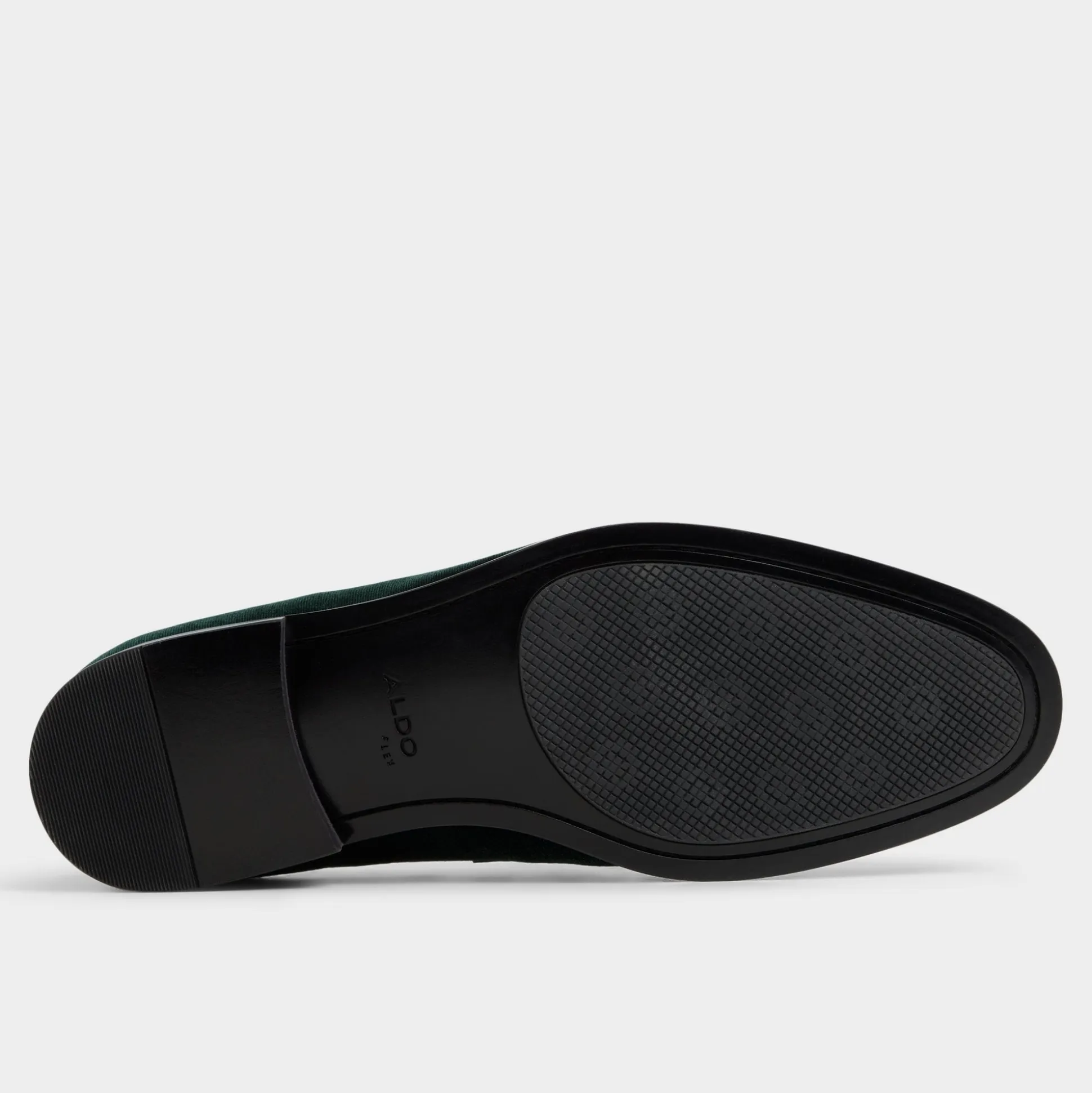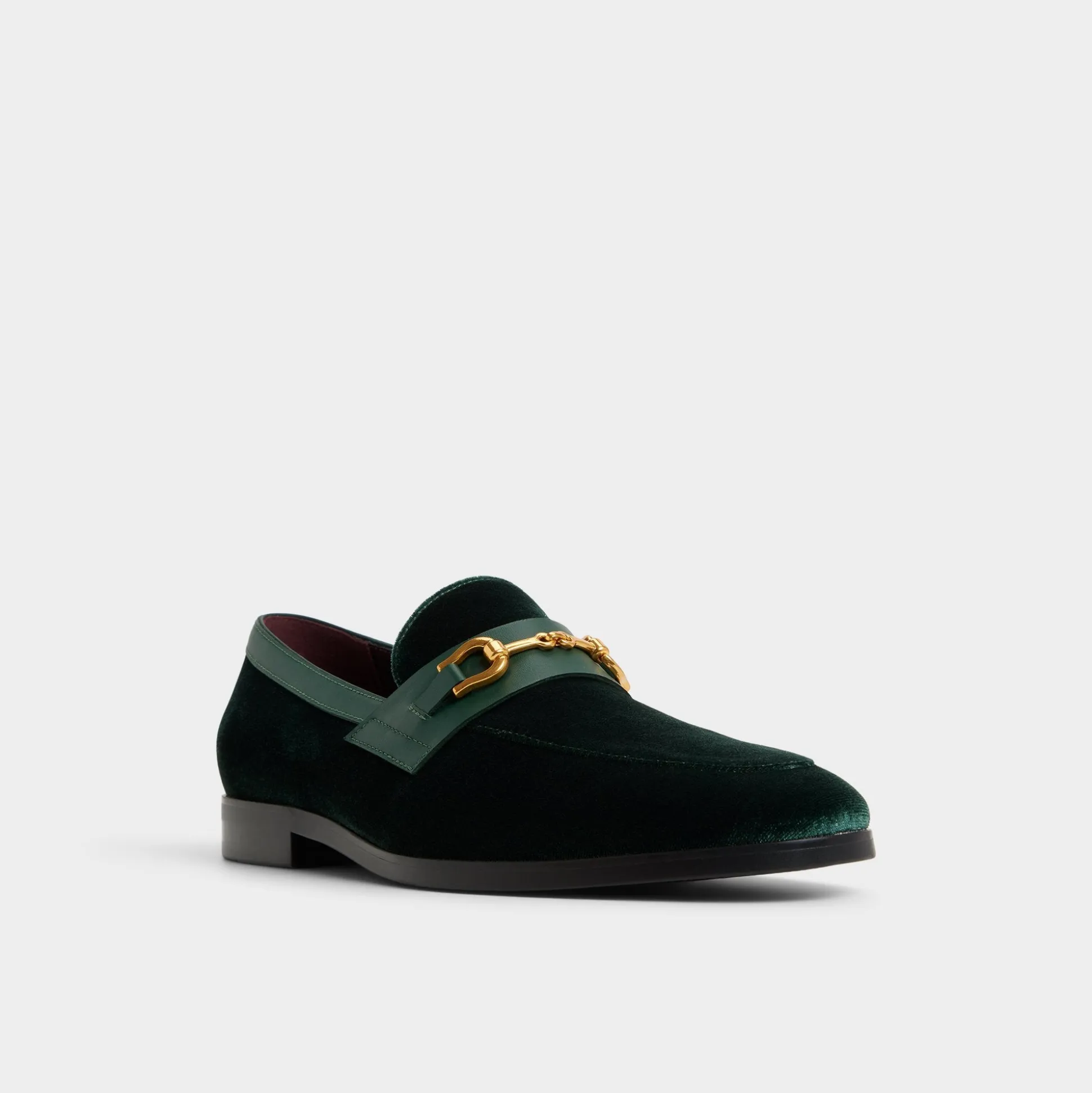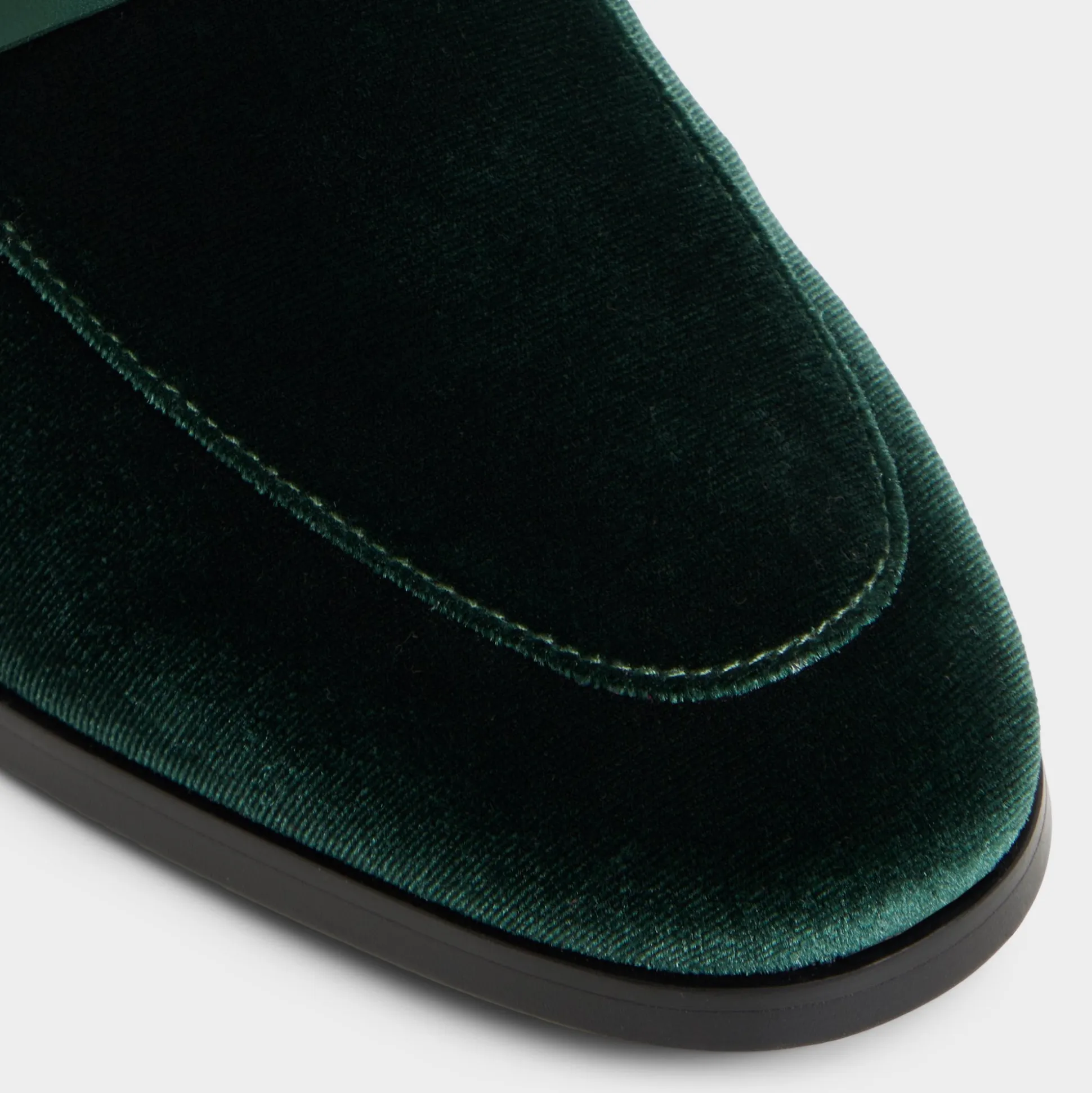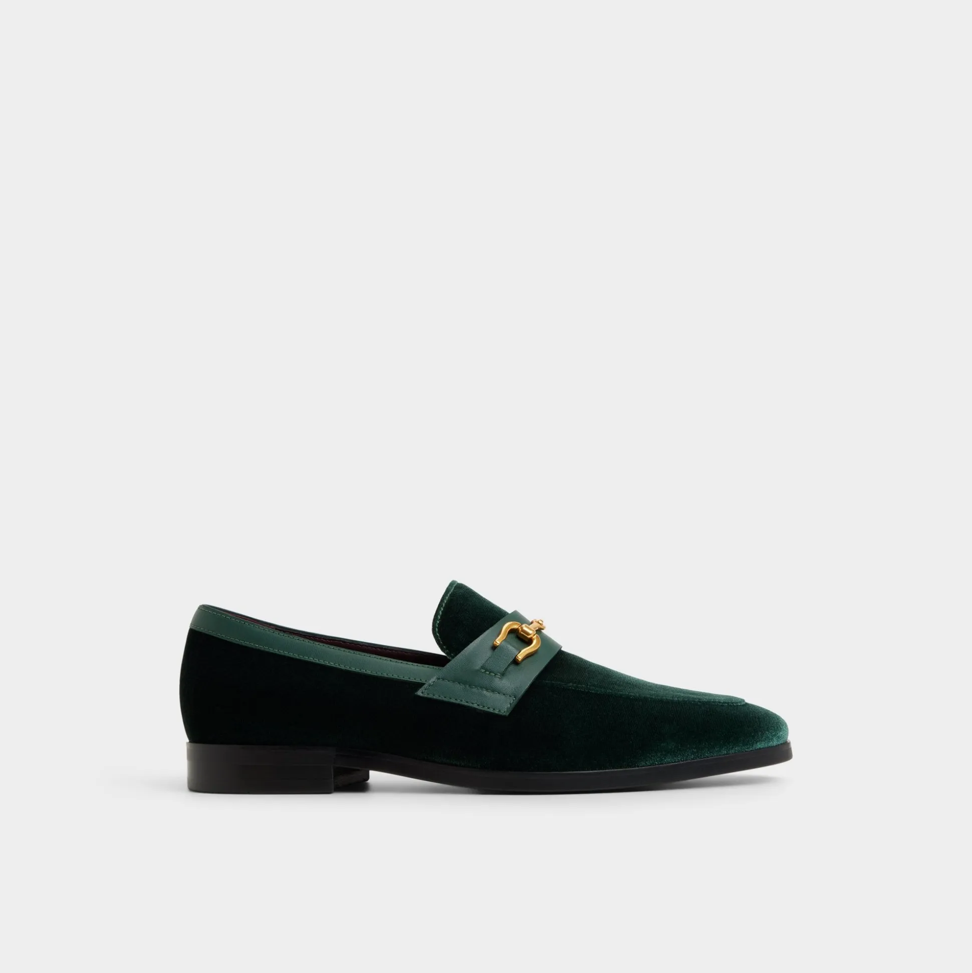 Emerald velvet drapes this slip-on loafer in quiet luxury, while a matte horsebit lends sculpted shine and a low stacked heel steadies every step with effortless poise for days that flow from desk to after-hours. Pair with tailored trousers for a gala-ready moment, or cuffed denim and a lightweight blazer for a versatile city evening.