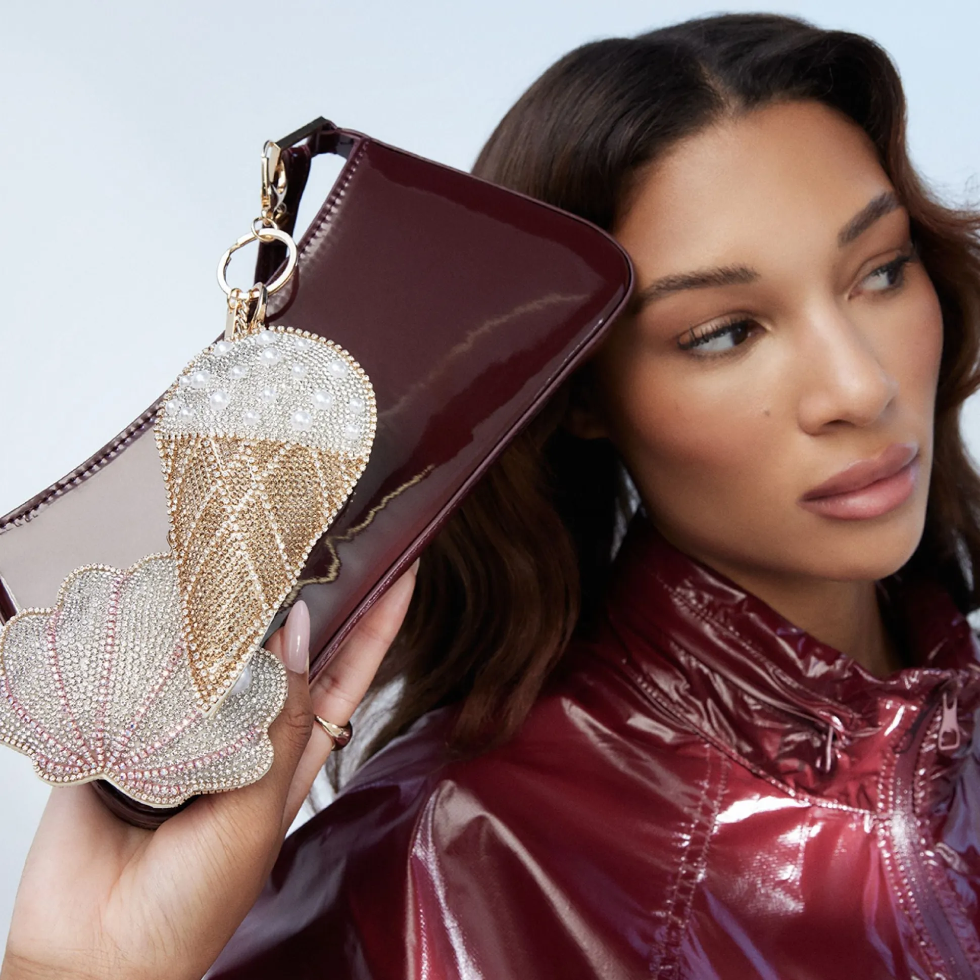 - Rhinestone embellished bag charm