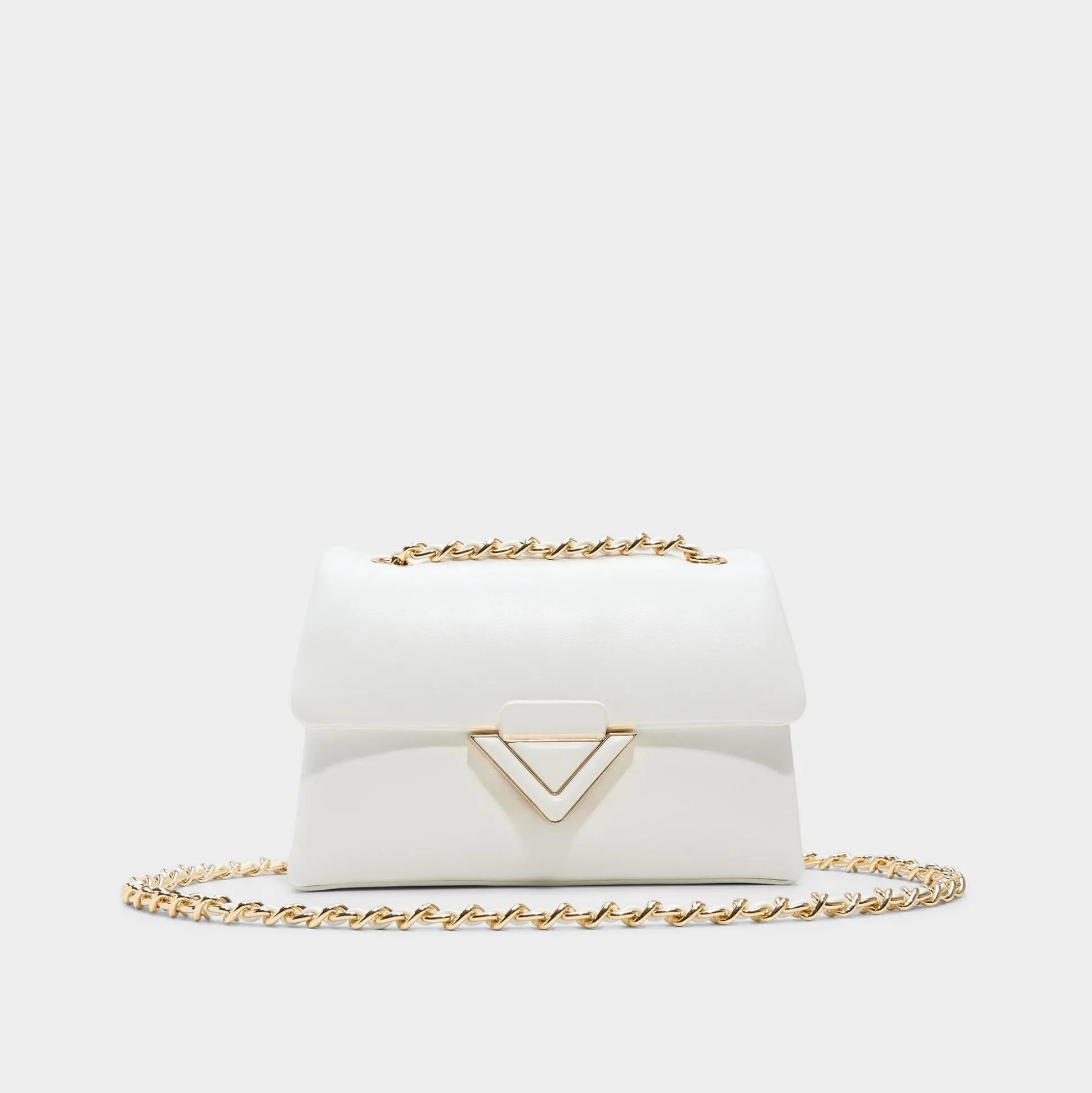 Cloud-soft leather folds into neat mini form with plush puff finish edged by sleek V-shaped gold clasp that snaps shut satisfyingly as gleaming rope-link chain keeps sophistication ready. Carry it with floral midi for garden brunches or sling over blazer-jeans combos at gallery hops sealing each outfit quietly luxe.