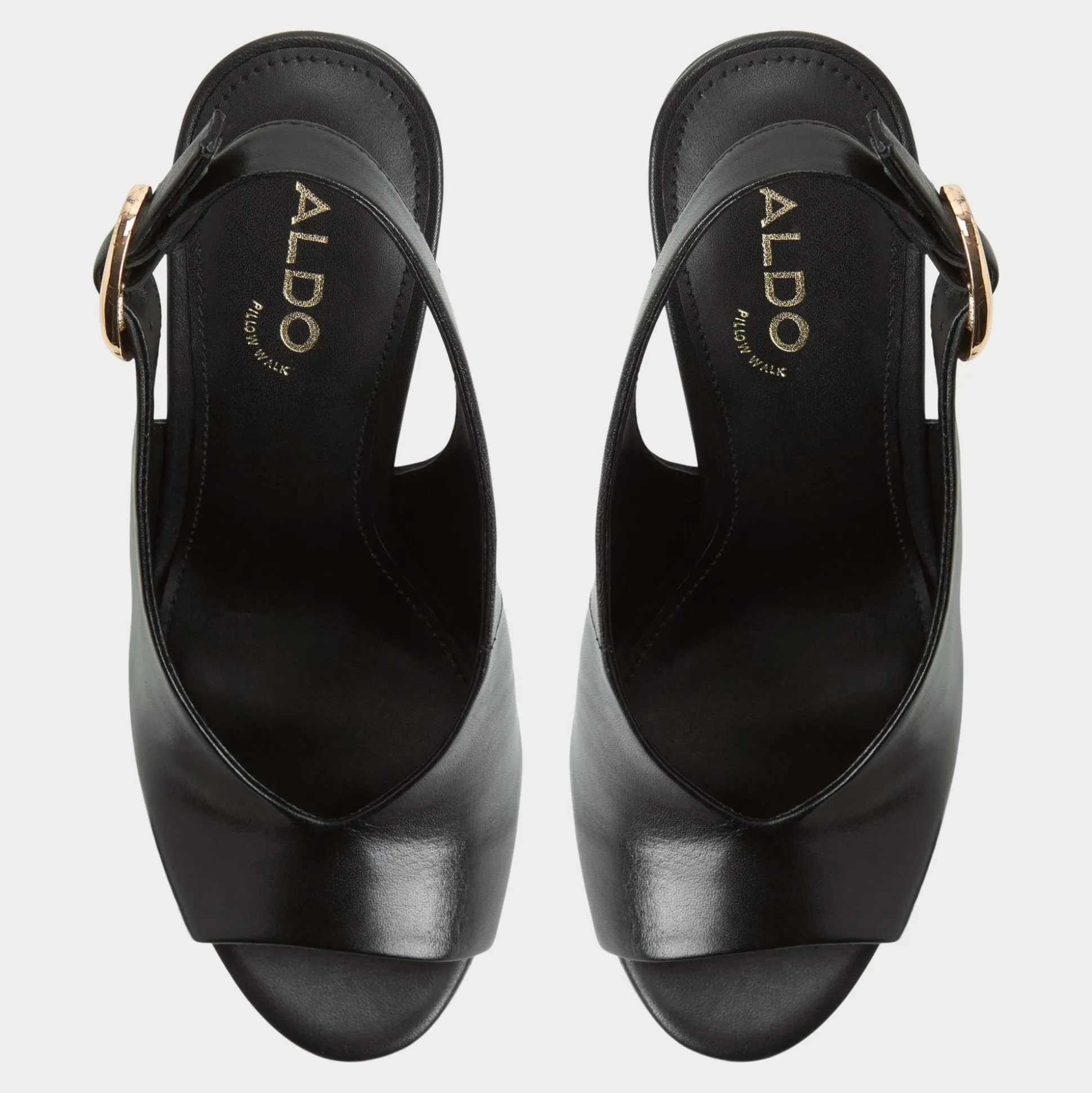 Vacation-ready black wedge sandal with a peep-toe opening and gold-buckle slingback. The stable wedge heel keeps you comfortable all day, from beach walks to evening outings. Effortless style for warm-weather escapes.