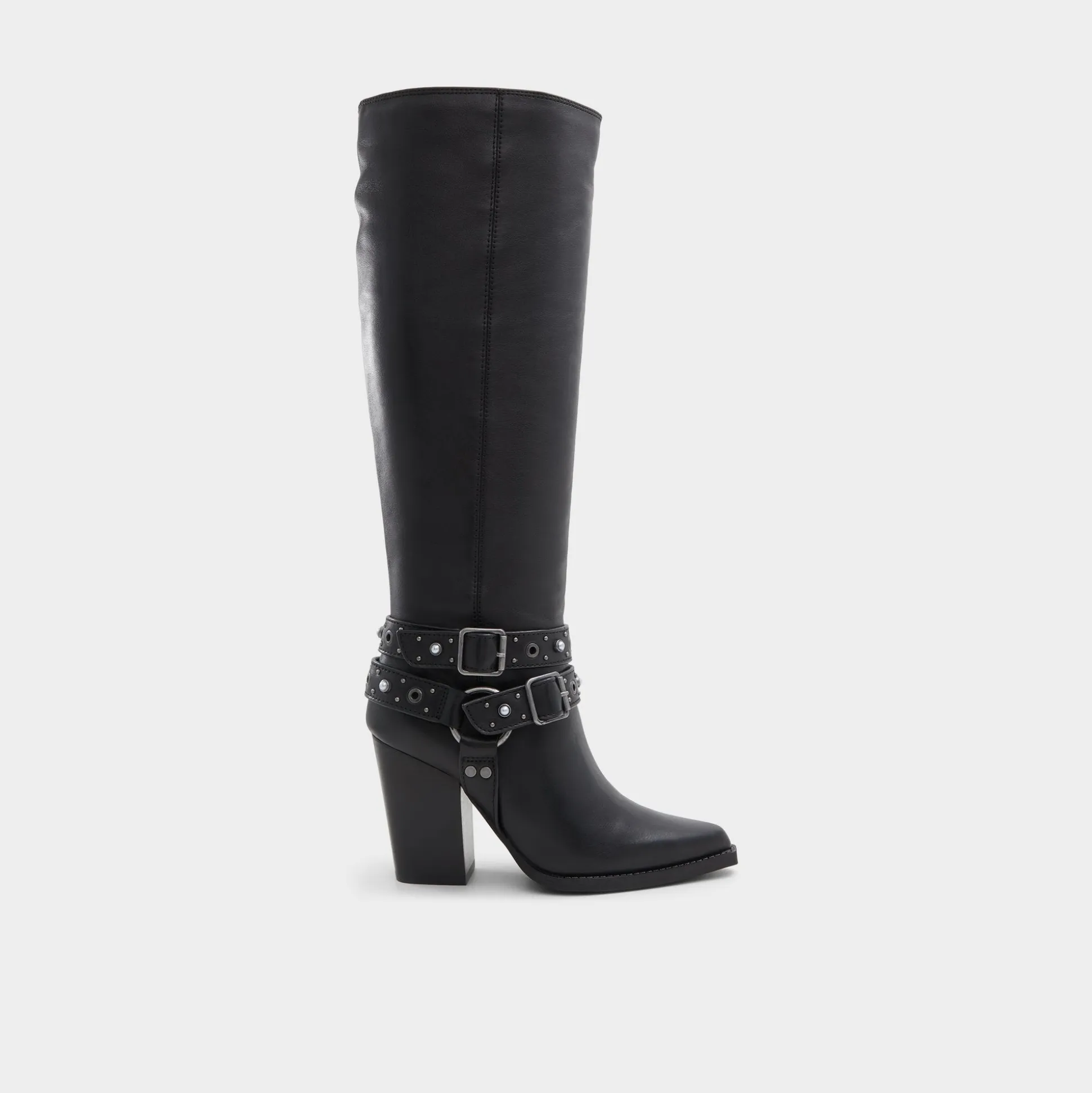 The buckle detailing of these pointed toe, western-inspired knee-high boots adds just that extra touch of edge you were looking for.