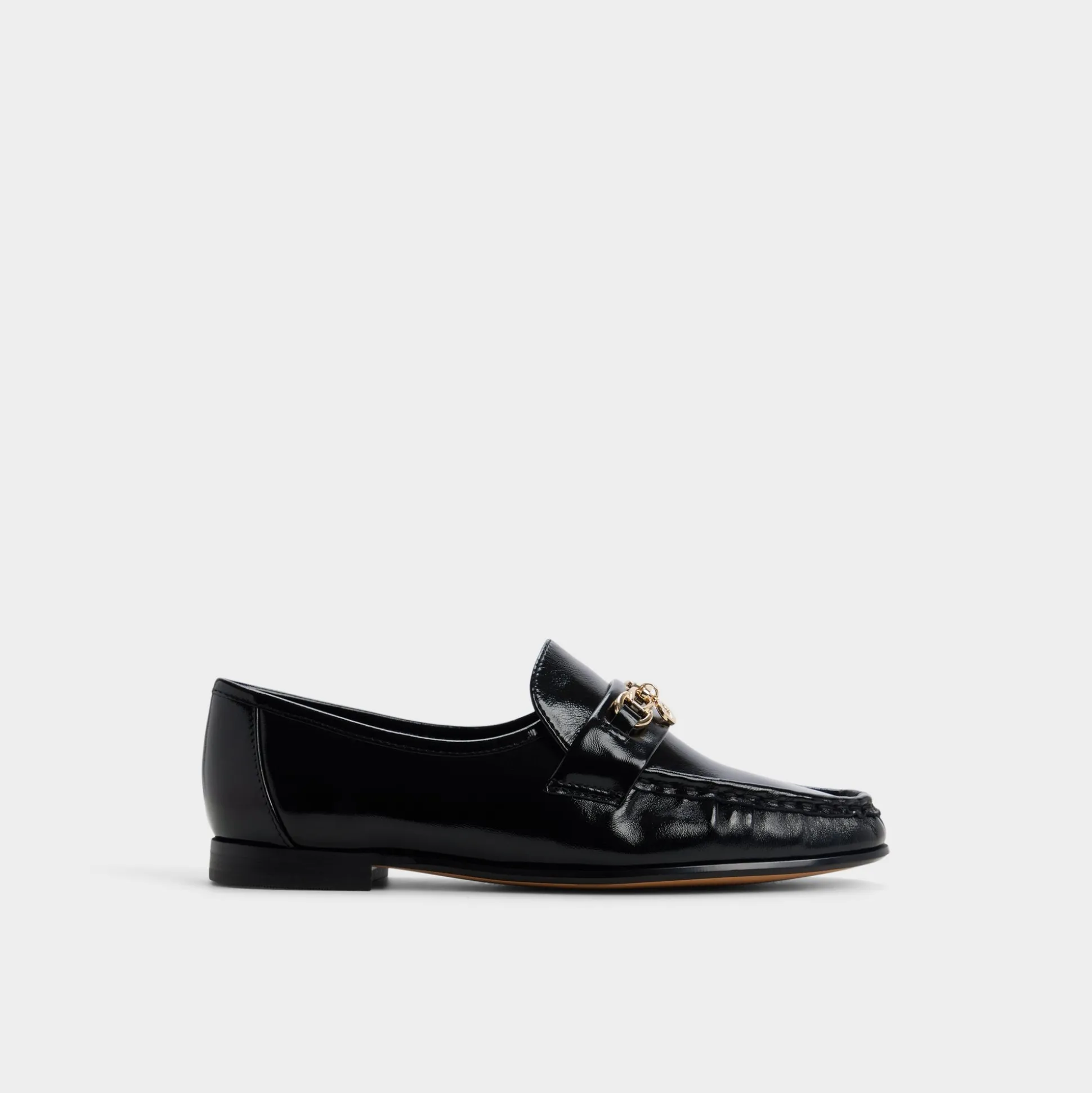 Mirror-gloss patent leather turns these loafers into quiet power moves, with gleaming gold buckles skimming the vamps for a subtle glow that keeps morning meetings feeling pulled-together and polished, ready for the day’s schedule. Pair with tailored trousers for boardroom confidence, or swap in denim for a gallery stroll that leads to candlelit noodles.
