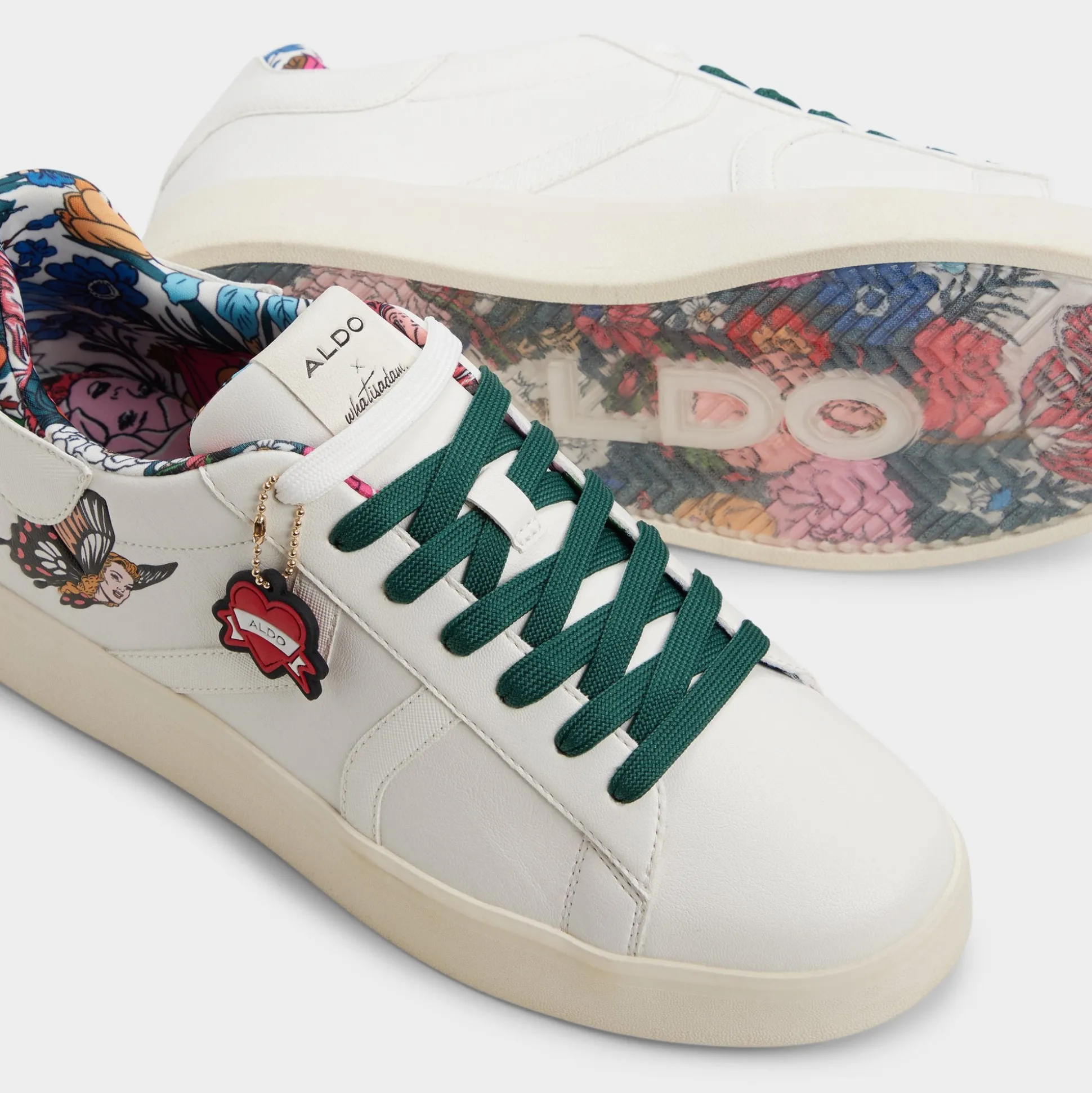 Tattoo-inspired butterfly designs cover white synthetic leather, accented by a small enamel embellishment, while a soft lining and lightweight cupsole keep every step easy from dawn commutes to night strolls. Pair distressed jeans for concerts or roll with tapered joggers on weekends—the artistic touch keeps conversations going.