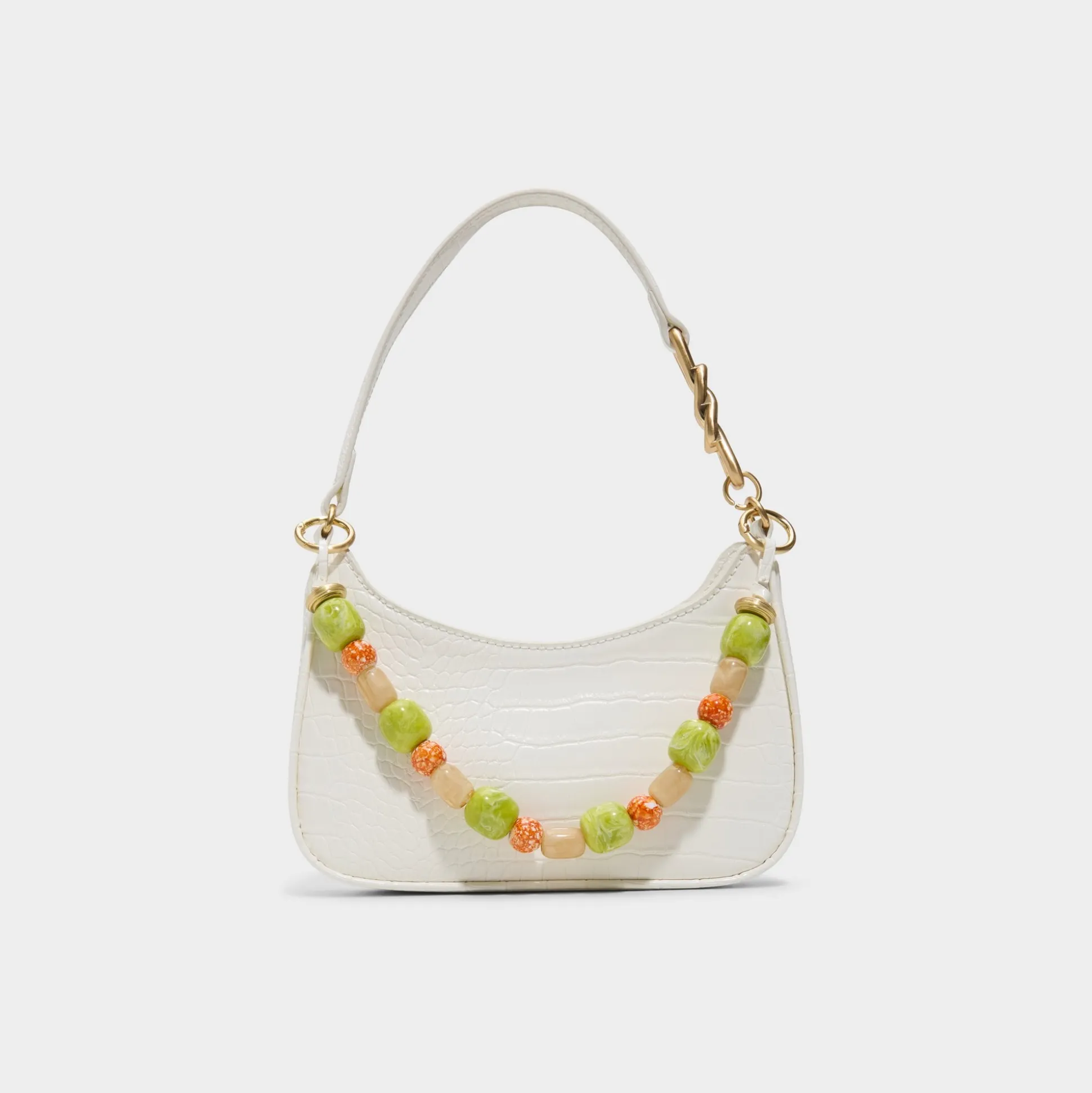 Elevate your vacation style with the Whitegemm shoulder bag. Crisp white material meets vibrant stone accents for a look that’s both chic and carefree. The perfect travel companion for sun-soaked getaways and beachside adventures.