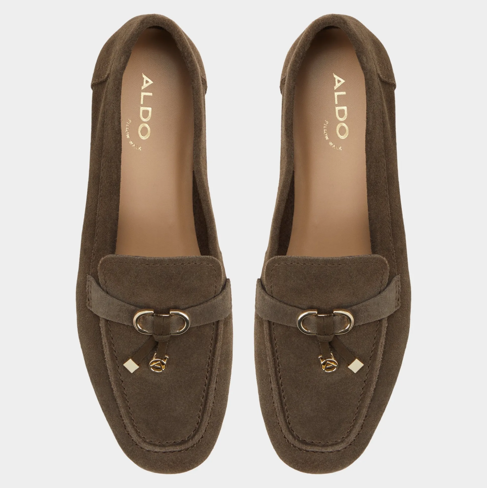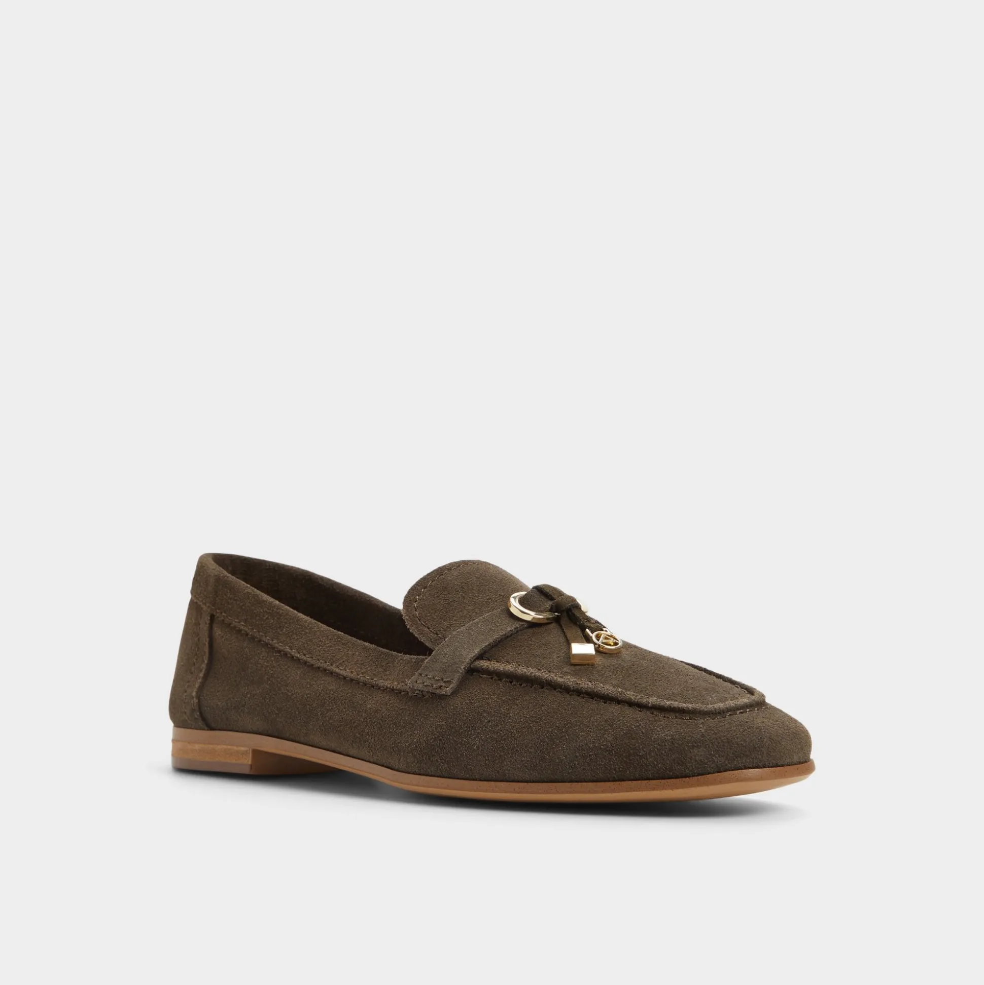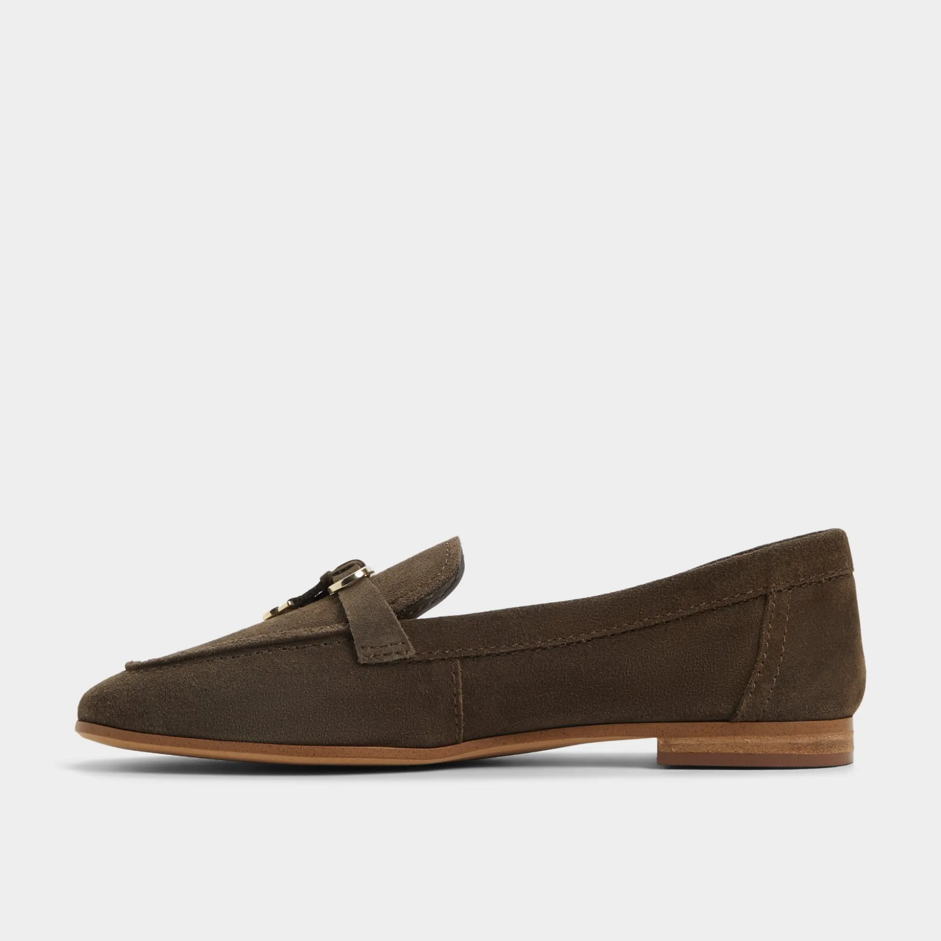 Earthy olive suede gives this low-profile loafer a velvety calm, with a slim gold buckle catching cafe light and hidden cushioning keeping every brainstorm or late-flight sprint composed. Pair with cropped trousers for pitch days, or slip on with pleated midi skirts when gallery openings lead to noodle runs.