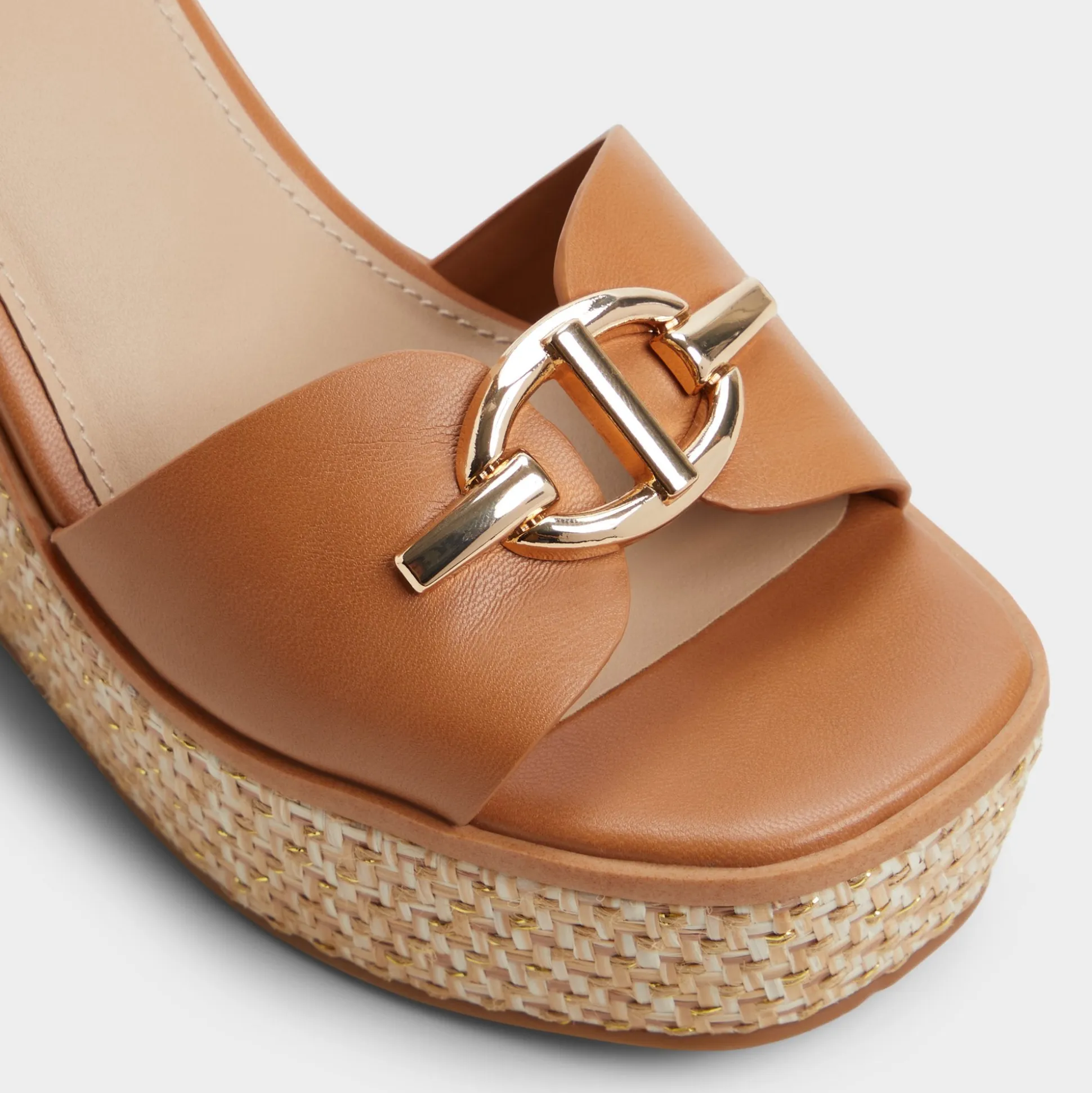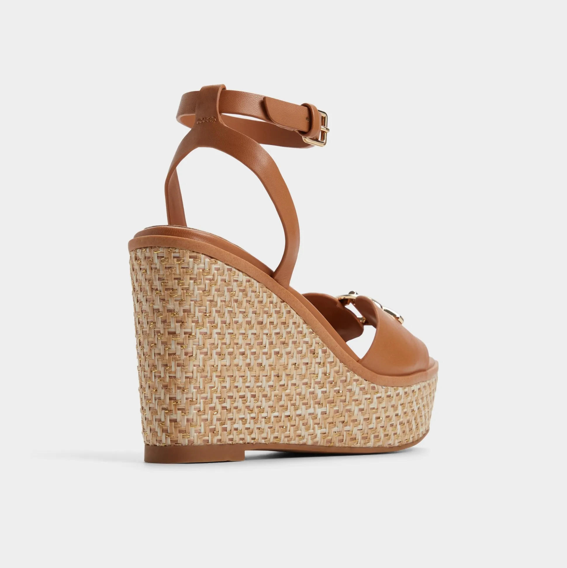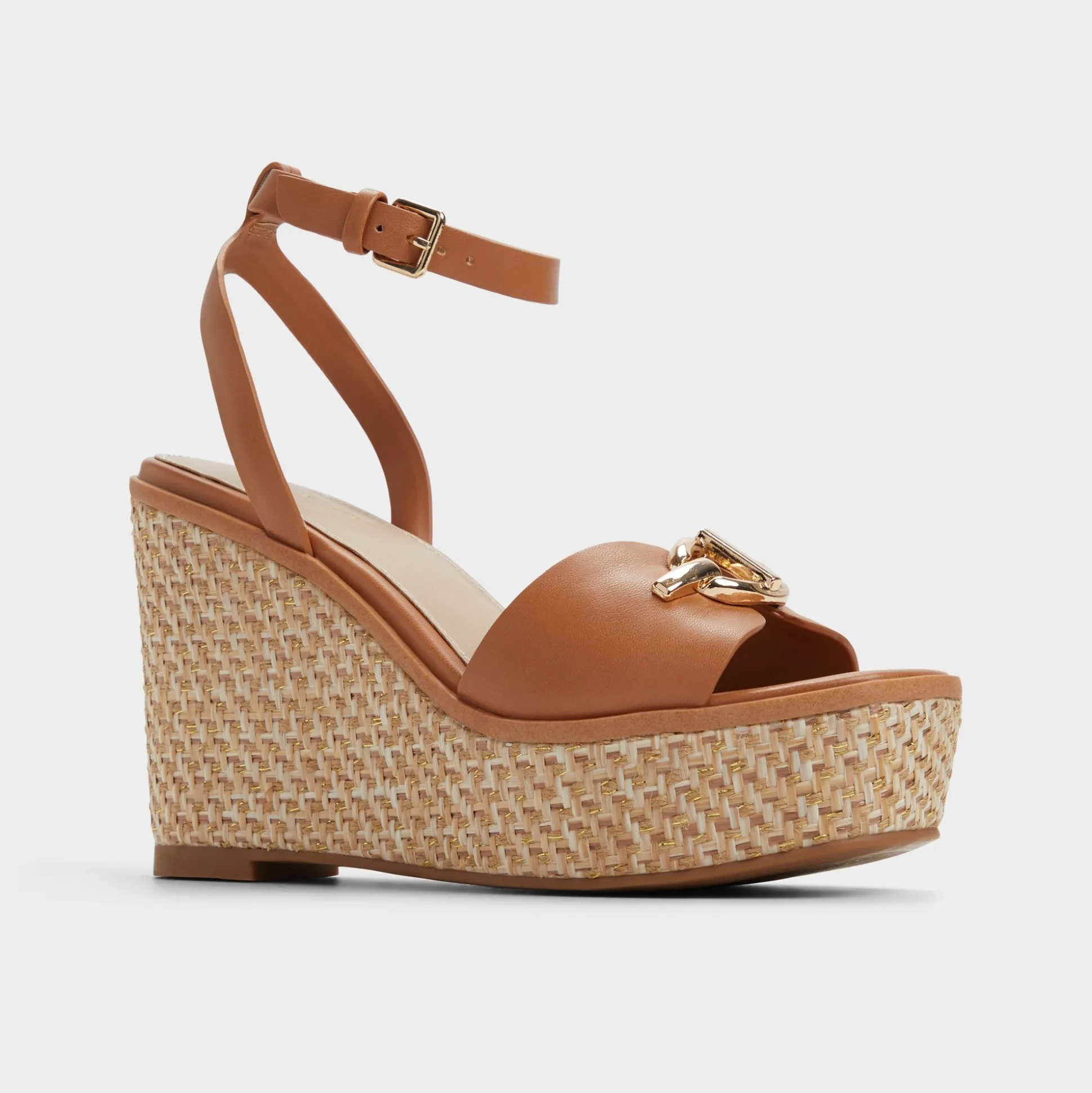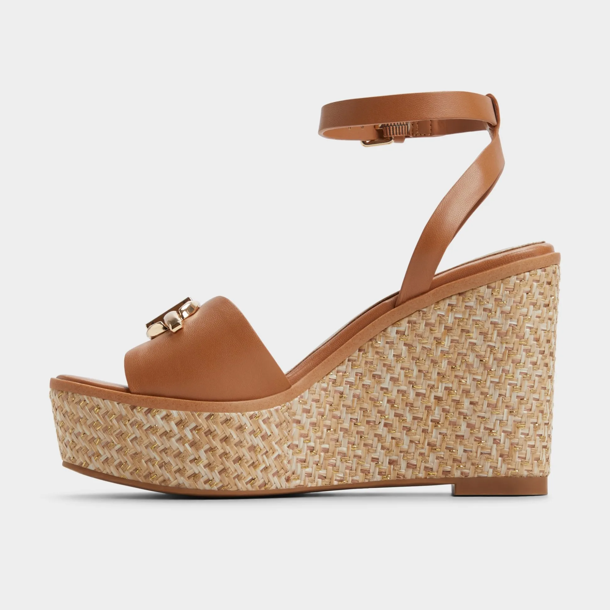 Sun-warmed leather cradles your foot while a sculpted basket-weave wedge lifts you-lightweight and steady, adorned with a gleaming buckle like treasure found in your weekend tote. Pair with cotton shorts for farmers-market laps, or swap in a printed wrap dress when brunches blur into gallery strolls.