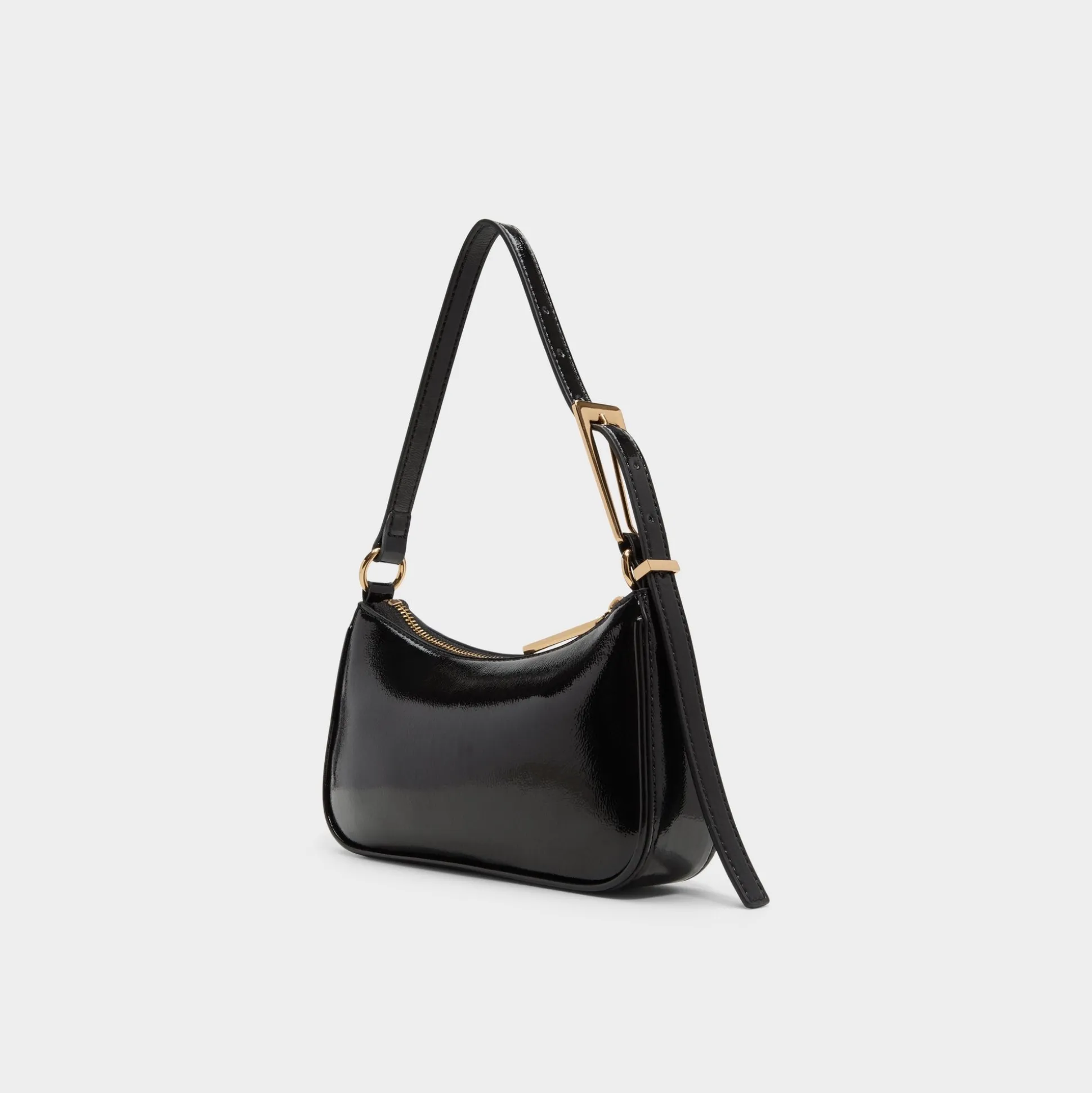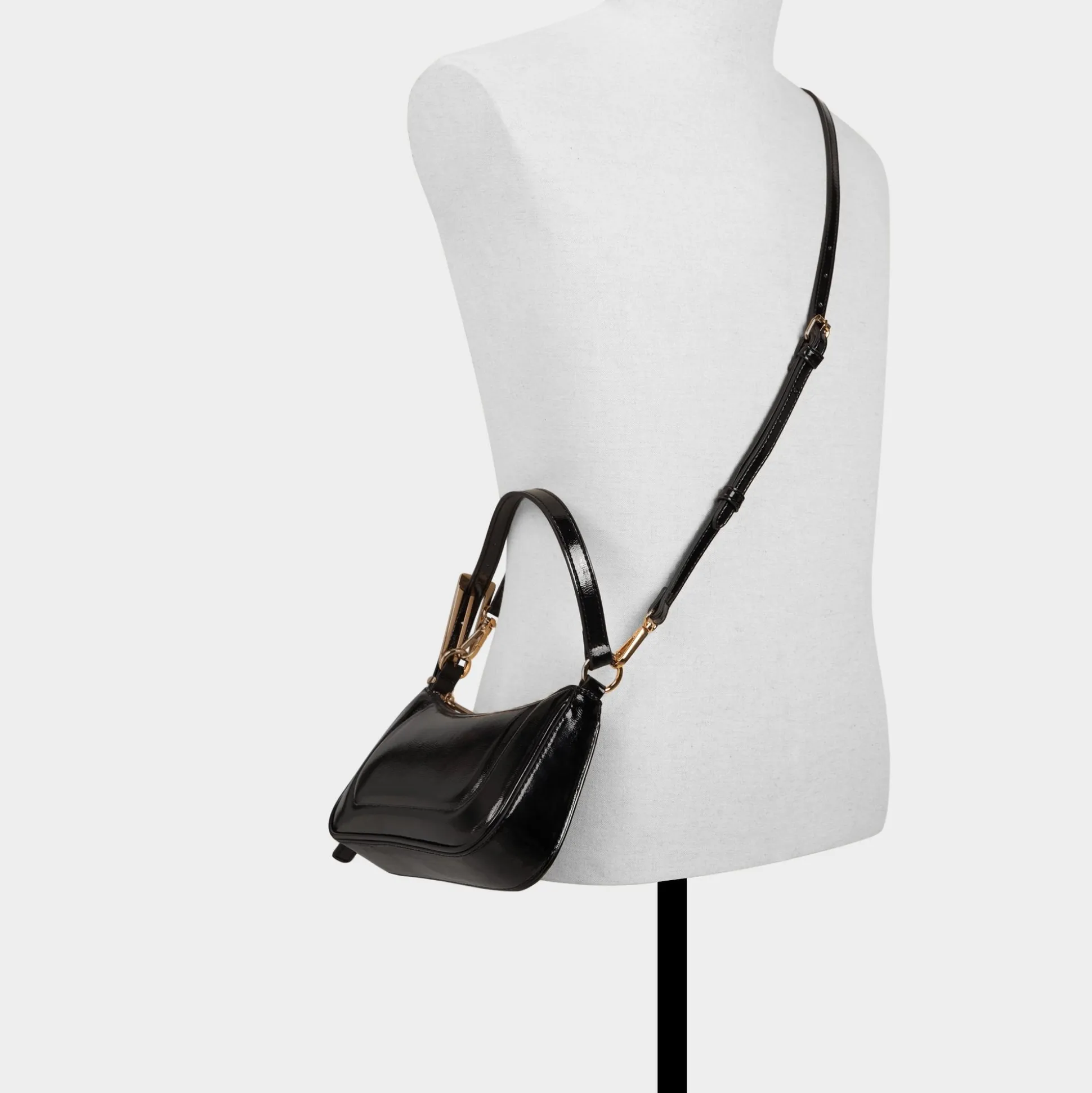 Glossy black patent catches every streetlight and makes this sleek baguette bag glow, with a clip-off shoulder strap that lets you switch from clutch to cross-body in a heartbeat anywhere. Carry it with a slip dress for rooftop dates, or sling it with jeans for coffee runs, finishing outfits with quiet shine.